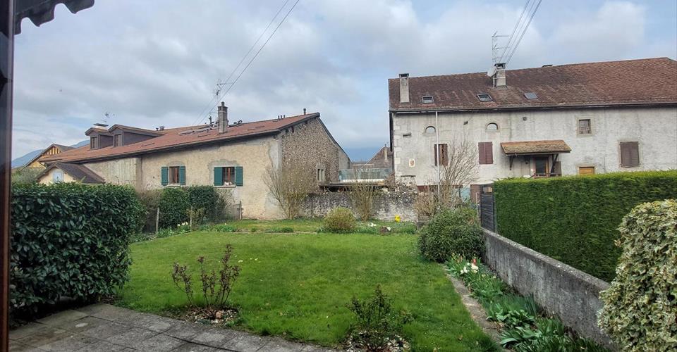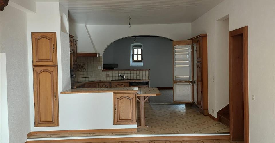 comprenant : Rez-de-chaussée : Un hall d’entrée, un grand séjour avec cuisine ouverte et équipée, un grand salon avec une cheminée, une buanderie, un wc visiteurs, un accès à un grand jardin et une jolie terrasse. 1er étage : Quatre chambres à coucher, une salle de bains avec double vasques et un wc, une salle de douche avec un wc et un grenier. Cave en terre-battue à bien plaire. CHF. 200.00/mois pour les deux places de parkings se trouvant devant la maison.