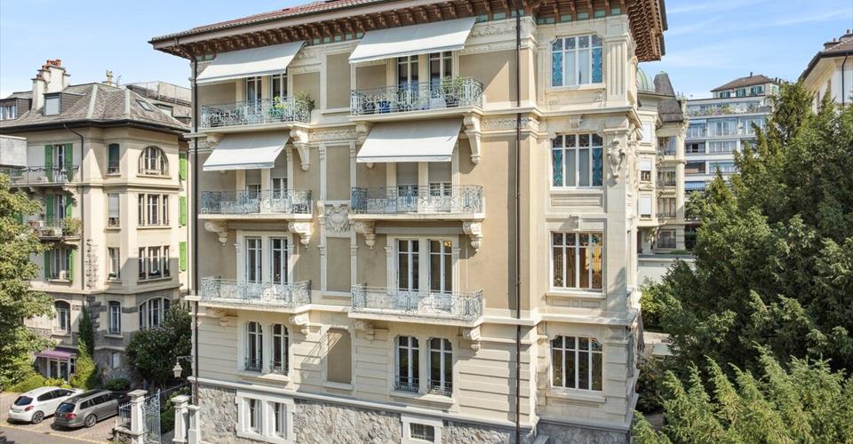 Idéalement situé dans le quartier prisé de Florimont, entre l’Avenue Juste-Olivier et l’Avenue des Alpes à quelques pas du Musée Olympique, cet appartement en PPE de standing offre de l’espace et du cachet intemporel. Construite en 1905 mais bien conservée et entretenue avec beaucoup de soin depuis, la “Villa Olivier” est un bâtiment prestigieux de style néobaroque italien de 4 lots PPE. L’appartement du premier étage comprend 8.5 pièces et 270m2 habitable environ, avec 3 balcons de 16.5m2 environ. Les parquets originaux, les plafonds richement décorés, les cheminées d’époque et les vitraux au véranda confèrent à cet appartement un cachet incomparable. Baignés de lumière, les espaces mettent en valeur une superbe hauteur sous plafond. L’appartement comprend également un galetas aux combles et une cave, et bénéficiera d’une mise au goût du jour par l’acquéreur. 1 place de parking est disponible au pied du bâtiment.