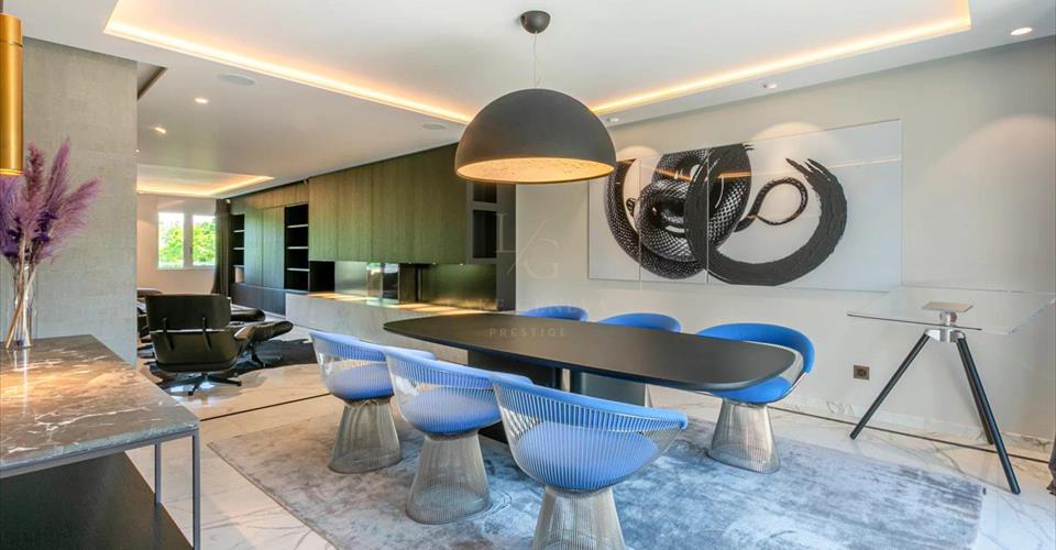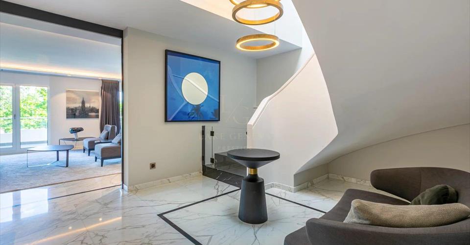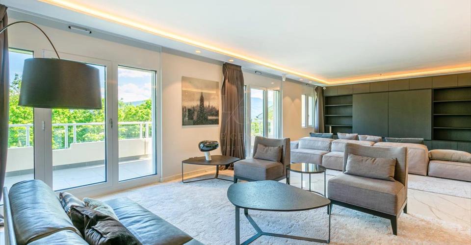 Cet appartement en duplex de 8 pièces est situé au dernier étage d’une charmante copropriété verdoyante, totalement sécurisée et très prisée, à proximité du centre ville de Genève et de toutes les commodités. Il bénéficie d’une belle vue dégagée sur les montagnes et offre des prestations, des matériaux et des finitions de très grande qualité. D’une surface PPE d’environ 393 m2, il offre également deux belles terrasses ainsi que deux balcons. Ses pièces à vivre offrent des volumes très généreux et la partie nuit compte quatre chambres à coucher en suite. De nombreux espaces de rangements, une grande cave et deux doubles box intérieurs complètent parfaitement cet objet unique. John Taylor Genève représentée par Lake Geneva Prestige SA est seule responsable de ces communications à la clientèle.