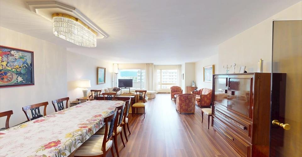 Dans un environnement résidentiel confidentiel, idéalement situé entre le Parc Bertrand et le quartier de Malagnou, ce bien rare à la vente bénéficie d’un emplacement privilégié, à quelques pas des commerces de la route de Florissant et tout proche du Cycle de la Florence. Un cadre calme et verdoyant, parfaitement connecté aux commodités urbaines ! L’ensemble se compose de trois lots réunis en une seule vente, pour une surface PPE totale de 285 m2 : Au 9e étage d’un immeuble soigné et bien entretenu, l’appartement principal développe 225 m² de surface PPE (selon cahier PPE, appartement de 215.6 m2 + 2 loggias de 4.9 m2 chacune). Traversant, lumineux et bénéficiant de deux entrées, une principale et une de service, il offre une spacieuse pièce de réception d’environ 60 m² prolongée par une loggia avec vue dégagée sur le Jura et le jet d’eau, trois grandes chambres dont une suite parentale avec dressing et salle de bains rénovée, ainsi que deux salles d’eau supplémentaires à rénover selon vos goûts. Une quatrième chambre est réalisable en recréant une cloison comme à l’origine, dans l’une des grandes chambres avec vue sur le Salève. La cuisine indépendante, à moderniser, présente également un fort potentiel d’ouverture et de rénovation. La belle hauteur sous plafond de 2,60 m et les nombreux rangements intégrés renforcent la qualité de vie offerte. Voisin de l’appartement, un studio indépendant de 42 m² PPE (selon cahier PPE, appartement de 31.6 m2 + 1 loggia de 9.8 m2) avec salle d’eau et loggia apporte une flexibilité d’usage très appréciable telle que bureau, chambre indépendante, logement du personnel ou bien de rendement. Il est envisageable de le relier facilement à l’appartement principal, sous réserve d’une étude technique et d’un accord préalable de la copropriété. Au 1er étage, une chambre de service de 18 m² PPE (selon cahier PPE, chambre de 13.5 m2 + 1 loggia de 4.5 m2) avec salle d’eau offre un espace complémentaire utile et polyvalent. Deux places de parking intérieures côte à côte situées au 2ème sous-sol viennent compléter ce bien, avec la possibilité d’aménagement en un double box fermé, toujours sous réserve d’un accord préalable de la copropriété. L’immeuble, construit dans les années 70, a bénéficié de rénovations importantes entre 2020 et 2022, notamment les façades, la toiture et l’isolation périphérique. Les copropriétaires profitent en outre d’un agréable jardin, d’un parc avec jeux pour enfants, d’un local à vélos, d’une buanderie commune et d’une station de lavage pour véhicules. Enfin, deux caves sont rattachées à la propriété, dont une particulièrement spacieuse, idéale pour le rangement d’objets volumineux, d’archives ou pour créer un espace de stockage parfaitement organisé. Des travaux de rafraîchissement et ou rénovation sont à prévoir, principalement la cuisine et les salles d’eau hors celle de la chambre master, mais le bien se distingue par son potentiel de valorisation important, sa modularité et son emplacement privilégié. Le studio et la chambre de service sont libres de tout occupant, n’ont jamais été loués et ne sont donc pas soumis à requête LDTR, offrant ainsi une totale liberté d’usage pour l’acquéreur. Un bien lumineux, aux volumes rares, situé dans l’un des secteurs les plus recherchés de la rive gauche genevoise et qui offre discrétion, espace et fort potentiel. A distance et commentée par votre agent dédié, nous vous réservons une visite immersive 360°qui vous permettra de vous imprégner des lieux. Certaines photos de présentation peuvent être générées par l’IA afin de soumettre une idée de ce que peut devenir le lieu. Pour de plus amples renseignements, merci de prendre contact directement avec nos courtiers.