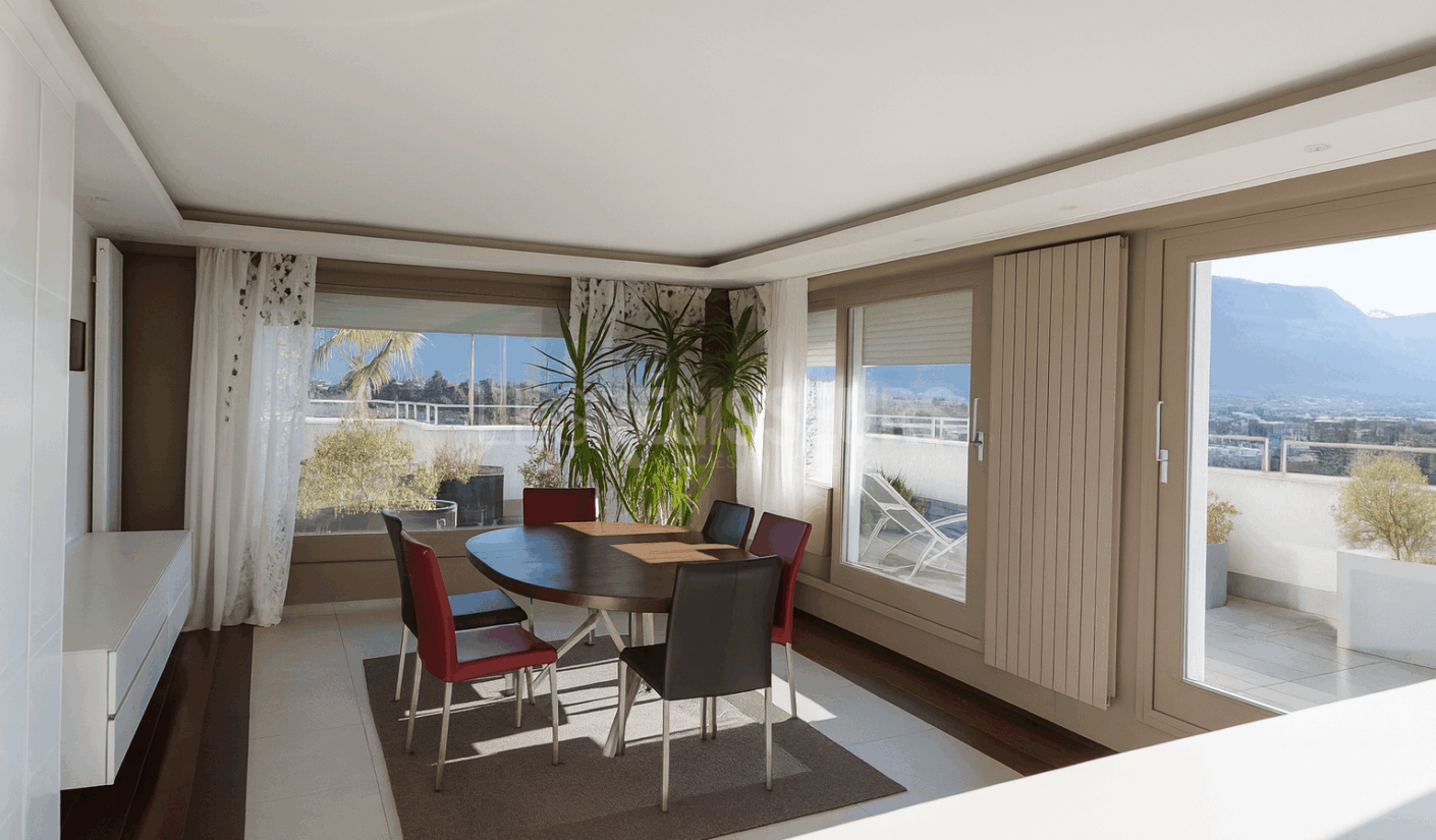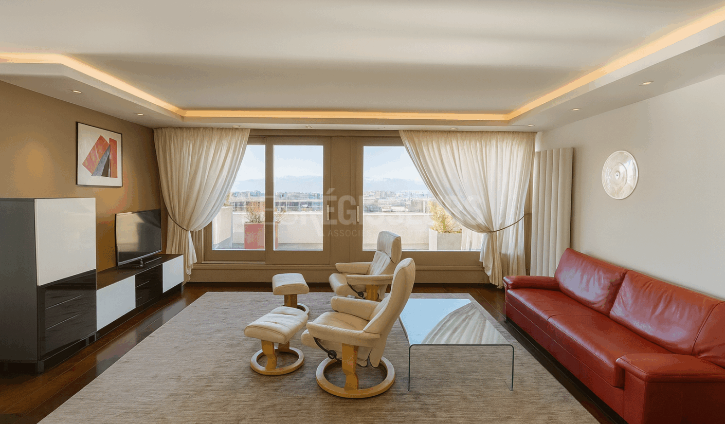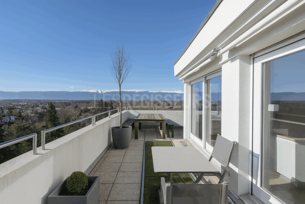 Attique d’exception 230m² avec 119m² de terrasse – Vue panoramique 360 degrés sur le Mont-Blanc et le jura.