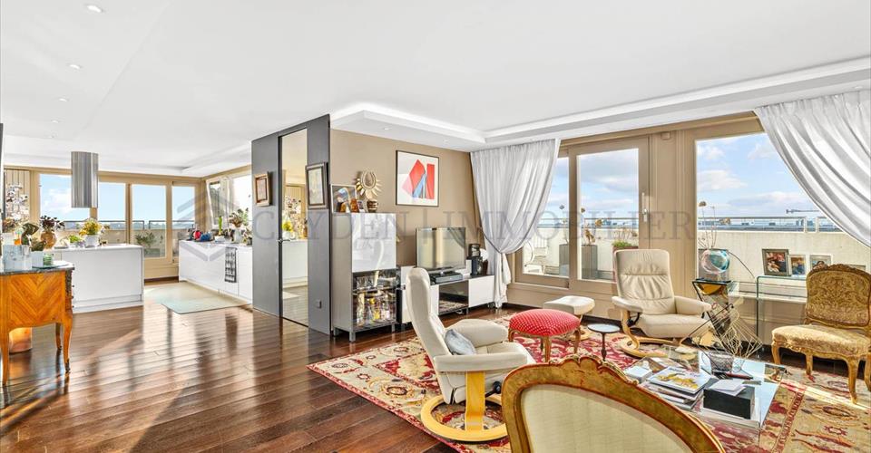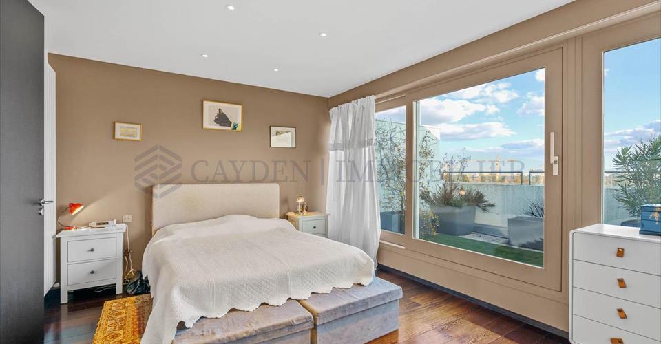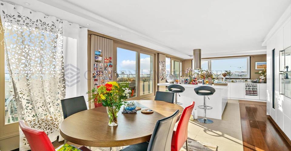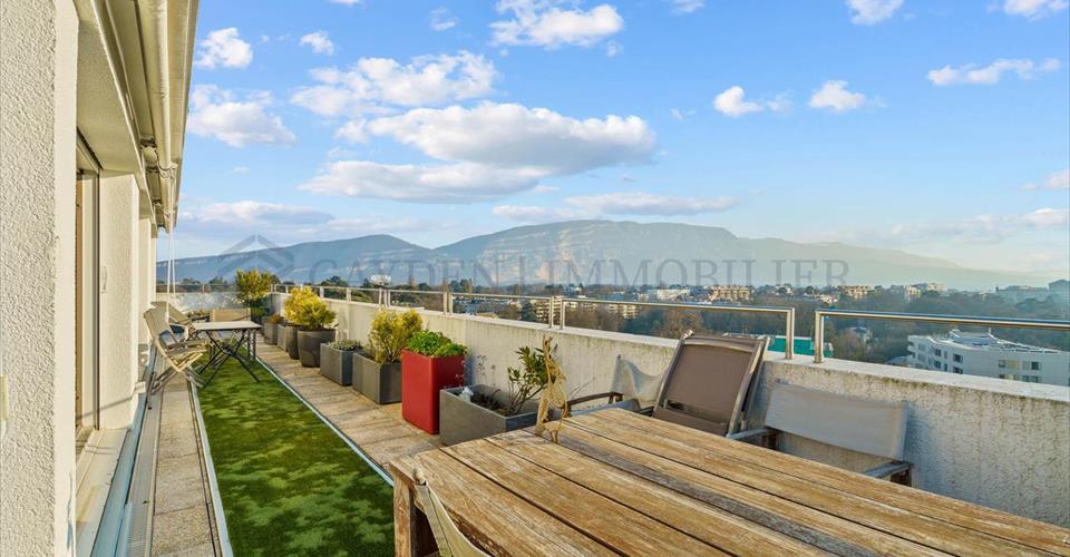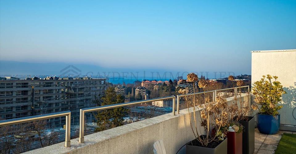 Coup de coeur assuré : un bien d’exception situé à Grange-Canal. D’une luminosité exceptionnelle, cet attique en duplex entièrement rénové en 2014 avec des matériaux de prestige se répartit sur le 10ème et le 11ème étage d’un immeuble de standing. Sa magnifique terrasse de 120m2 exposée plein sud permet de profiter d’une vue à couper le souffle sur la ville, le jet d’eau, le lac et les montagnes. D’une surface PPE de 230m2, l’appartement de 8 pièces se distribue comme suit : 1er niveau : – Belle entrée – Suite parentale avec grand dressing, sa salle de bains complète et accès au grand balcon – Première chambre avec dressing, salle de douche et accès au balcon de 9m2 – Deuxième chambre avec dressing, salle de douche et accès au balcon commun aux deux chambres – Toilettes séparés 2ème niveau : – Grande pièce de vie avec cheminée à l’éthanol – Cuisine entièrement équipée avec îlot central et bar, ouverte sur la salle à manger – Chambre avec salle de douche attenante et placards – Toilettes invités – Buanderie et dressing – Accès à la terrasse panoramique Ce bien est complété par un box double en sous-sol, une place de parc extérieure et deux caves. Les transports en commun, de nombreux commerces et restaurants à proximité.