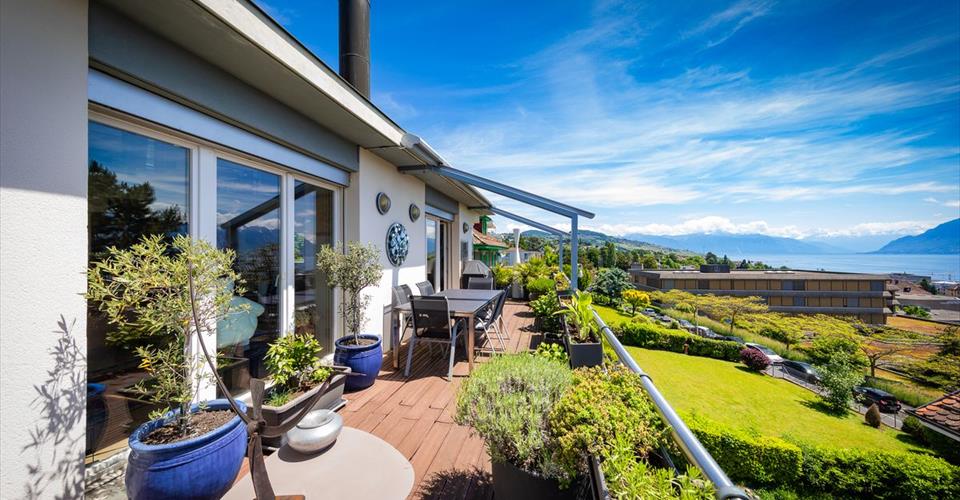 EXCLUSIVITÉ ROCKWELL PROPERTIES Niché dans l’un des quartiers les plus prisés de Pully, ce sublime penthouse occupe les deux derniers étages d’une résidence de standing. Idéalement situé, il bénéficie d’un environnement paisible tout en étant à proximité immédiate des transports publics, commerces, écoles et commodités. Accessible directement par un ascenseur privatif, ce bien d’exception offre une surface intérieure d’environ 210 m². Sa belle hauteur sous plafond, son orientation plein sud et sa conception soignée permettent une belle luminosité naturelle tout au long de la journée, ainsi qu’une vue imprenable sur le lac Léman et les Alpes. Un studio indépendant, situé au rez-de-chaussée de l’immeuble, complète le bien. Il comprend une salle de douche, une kitchenette et peut convenir parfaitement pour accueillir un adolescent, des invités ou du personnel. Un garage box double complète l’ensemble, et une troisième place extérieure est disponible à la location. Agencement : Spacieux hall d’entrée avec rangements intégrés WC visiteurs avec douche Grand séjour lumineux Salle à manger avec cheminée, accès direct à la terrasse Cuisine ouverte, moderne et fonctionnelle Mezzanine de 40 m² surplombant le séjour, comprenant un second salon, un bureau et une buanderie Suite parentale avec dressing et salle de bain attenante Trois chambres supplémentaires Une salle de bain indépendante Annexes : Cave Studio indépendant avec salle de douche et kitchenette Garage box pour deux véhicules Place de parc extérieure (en location) EXCLUSIVE TO ROCKWELL PROPERTIES Nestled in one of the most sought-after neighborhoods of Pully, this stunning penthouse spans the top two floors of a prestigious residence. Ideally located, it enjoys a peaceful setting while being in close proximity to public transport, shops, schools, and other amenities. Directly accessible via a private elevator, this exceptional property offers an interior living space of approximately 210 m². Its generous ceiling height, full south-facing orientation, and thoughtful design ensure abundant natural light throughout the day, along with breathtaking views of Lake Geneva and the Alps. An independent studio on the ground floor of the building completes the property. It features a shower room and kitchenette, making it ideal for accommodating a teenager, guests, or household staff. A double garage box is included, and an additional outdoor parking space is available for rent. Layout: Spacious entrance hall with built-in storage Guest WC with shower Bright and spacious living room Dining area with fireplace and direct access to the terrace Open, modern, and functional kitchen 40 m² mezzanine overlooking the living room, including a second lounge, office, and laundry area Master suite with walk-in closet and en-suite bathroom Three additional bedrooms One independent bathroom Additional Features: Cellar Independent studio with shower room and kitchenette Double garage box