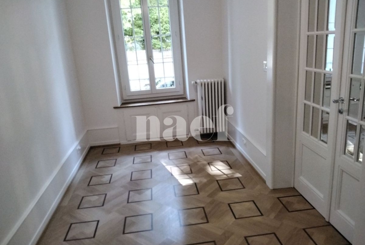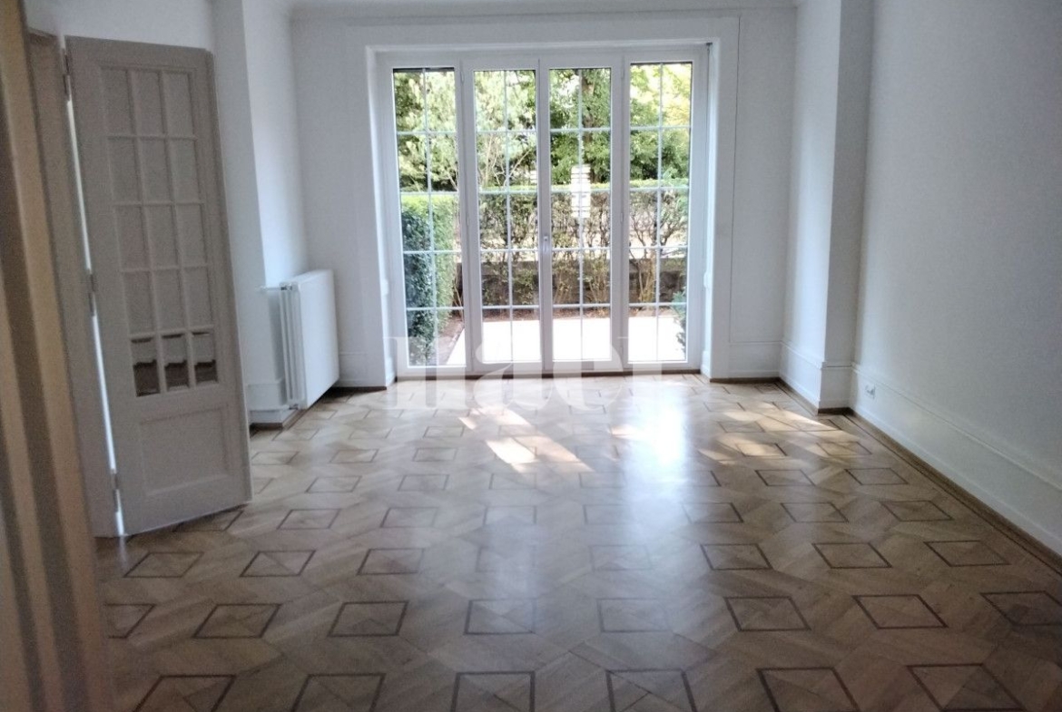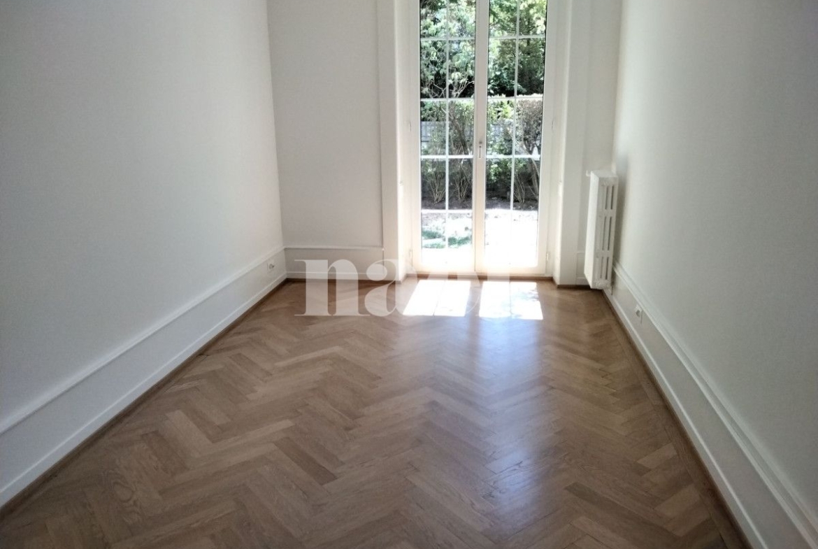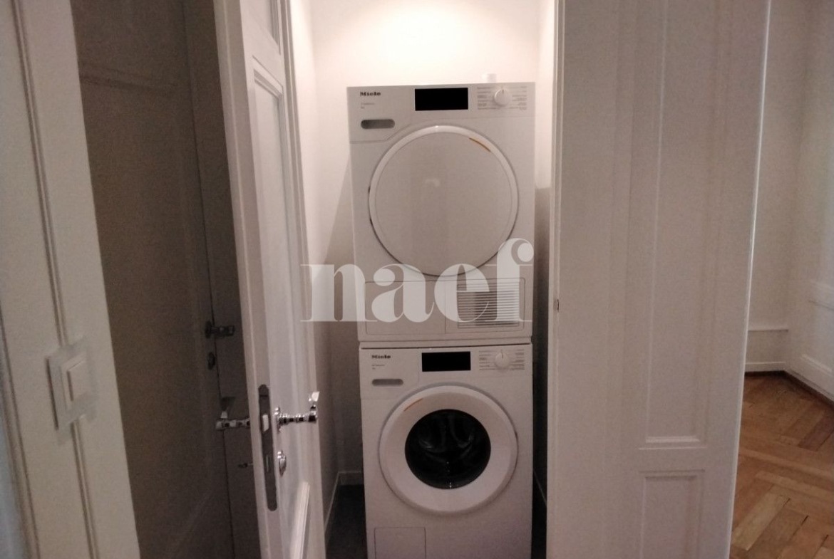 L’appartement se compose d’un hall d’entrée, d’un dégagement menant à la cuisine et d’un WC séparé destiné aux visiteurs. La cuisine est entièrement équipée avec un plan de cuisson à induction, un four, une hotte, un réfrigérateur, un congélateur, un lave-vaisselle, un four micro-ondes ainsi qu’une cave à vin. Les espaces de vie comprennent une salle à manger, un séjour et un espace bureau. La partie nuit s’organise autour d’un dégagement distribuant quatre chambres, un réduit, une salle de bain, un WC séparé et une salle de douche. L’appartement dispose également d’une buanderie, d’un balcon et d’une terrasse.