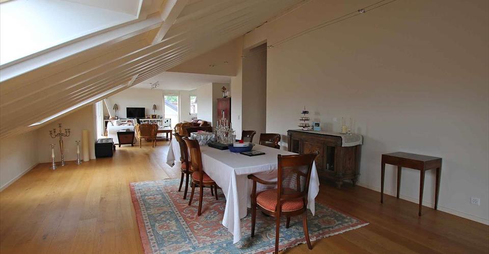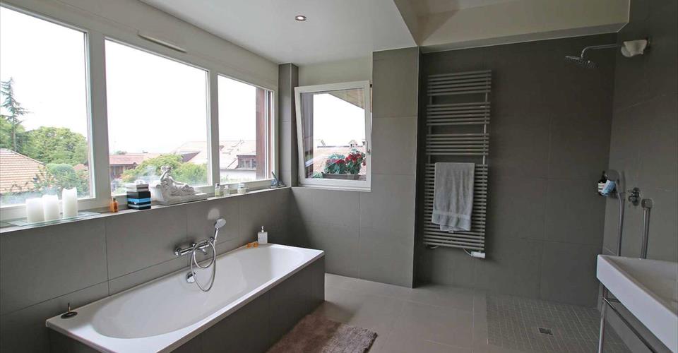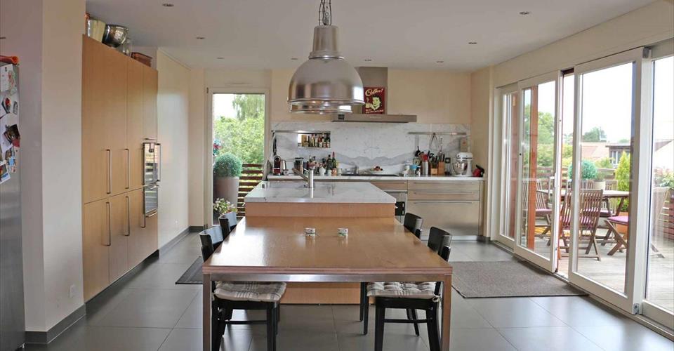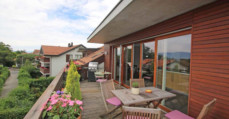Situé au cœur du village d’Anières, ce spacieux appartement de neuf pièces dispose de nombreux atouts et offre des espaces généreux. La partie jour se compose d’un hall d’entrée avec rangements, une grande cuisine ouverte entièrement équipée avec accès balcon/terrasse en enfilade, une salle à manger et un séjour et un coin bureau avec balcon. La partie nuit quant à elle se décline de deux chambres à coucher, une salle de douche avec toilettes, un espace buanderie, une chambre à coucher avec salle de douche attenante, une salle de bains avec toilettes, ainsi qu’une chambre à coucher principale avec son dressing et sa salle de bains complète. Deux caves et deux places de parking complètent ce bien.