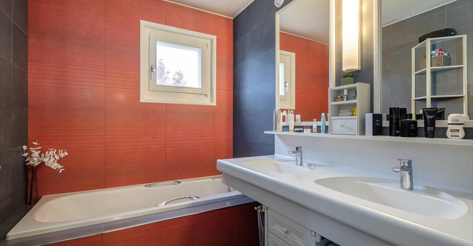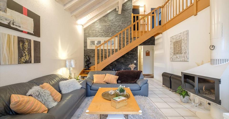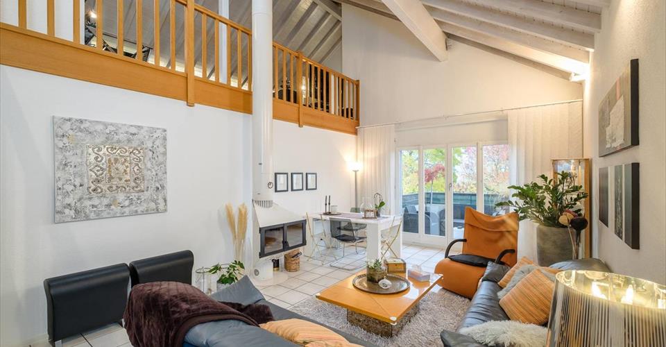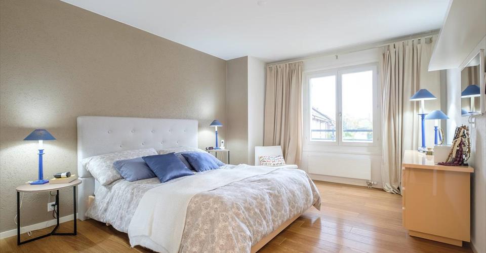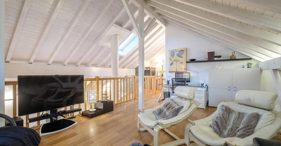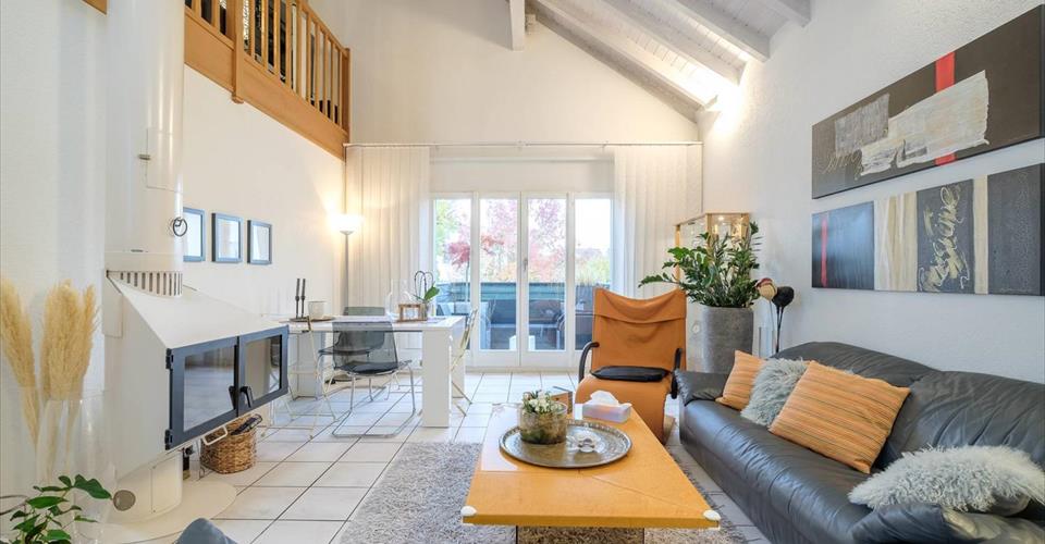 Sis dans une charmante copropriété villageoise, cet agréable et lumineux duplex de 9 pièces profite d’un environnement calme et bucolique dans le village de Sézenove à proximité de Bernex et de ses commodités. Situé au premier et dernier étage d’une petite résidence, le bien en parfait état a été entièrement rénové en 2011. Il offre une surface PPE de 134,4 m² au premier niveau et 100,6 m² au second niveau, ainsi qu’un balcon de 4,7 m². Il se compose comme suit : 1er étage : • Hall d’entrée avec vestiaire • Grand séjour cathédral avec poêle et accès à un balcon de 4,7 m² • Superbe cuisine entièrement équipée et agencée avec bel espace dinatoire • Corridor avec grandes armoires • Une chambre avec armoires • Deux chambres • Une salle de bains • Une salle de douche • WC lavabo visiteurs Dernier étage : • Une belle mezzanine avec velux faisant office de second salon • 2 chambres • Une salle de douche • Rangements dans les sous-pentes Une cave, une place de parc en sous-sol et un grand box complètent ce bel objet !