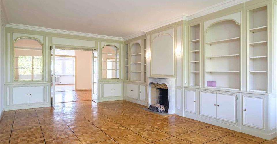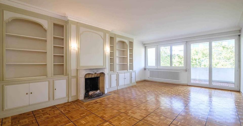 Ce vaste appartement de 9 pièces, parfaitement orienté, se trouve au 5ème étage dans un immeuble de haut standing avec piscines en toiture, dans le quartier prisé de Malagnou, au calme absolu. En pignon (Est, Sud et Ouest) et disposant d’une surface PPE de 231 m² plus quatre balcons totalisant 44 m², il se répartit comme suit : La partie jour propose un très grand hall d’entrée, un vaste salon avec cheminée et accès au balcon, une cuisine ainsi qu’une grande salle à manger avec accès au balcon. Un grand office avec entrée de service et un WC lavabo visiteurs complètent cette partie. La partie nuit offre 4 chambres dont deux très grandes chambres avec armoires encastrées, salle de bains en suite et balcon. Une salle de douche supplémentaire complète la partie nuit. Une cave et un box en sous-sol viennent parfaire l’ensemble. A noter que ce bien nécessite des travaux de rénovation.