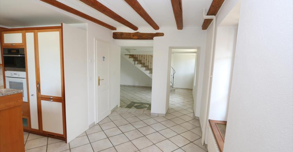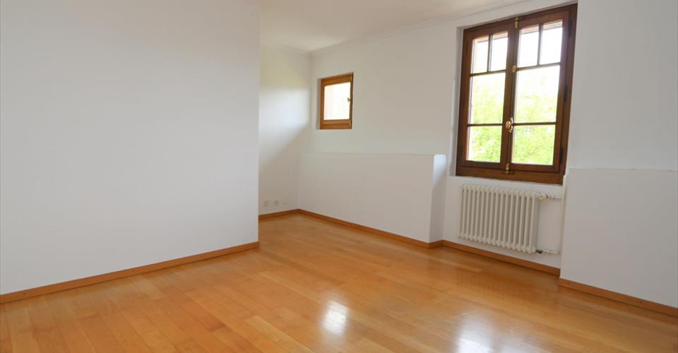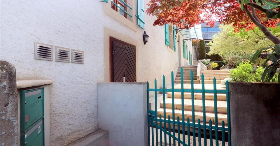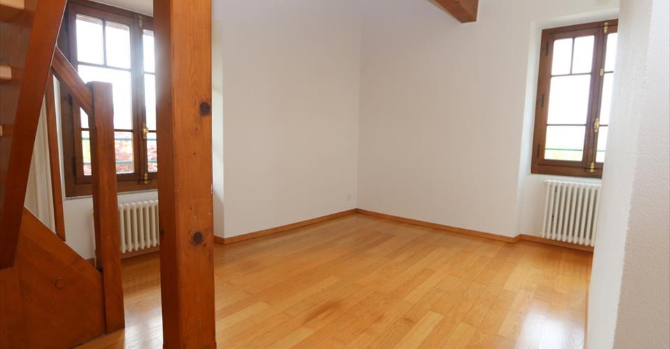 Créé dans une ancienne maison rurale datant du début des années 1800, cet appartement, en triplex, en occupe la moitié. L?autre moitié étant, quant à elle, occupée par un appartement de même importance. Il offre : rez-de-jardin : – entrée – salon-salle à manger attenante (~ 32 m2) – cuisine disposée en « U » agencée et équipée – WC étage – 2 chambres à coucher (1 de ~17 m2, l?autre de ~12m2) – salle de bains avec baignoire, douche et WC combles (sous rampants de toiture) – chambre à coucher – mezzanine – salle de douche – WC en annexe : pièce pour installation technique et buanderie. Terrasse et jardin d?une surface de plus de 400 m2. Places de parking.