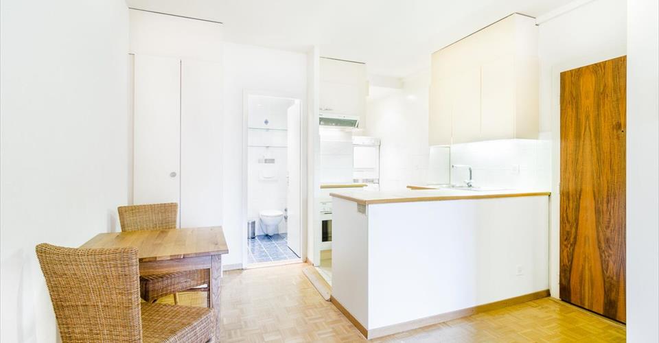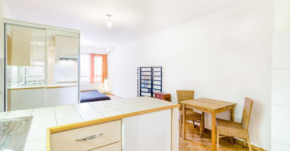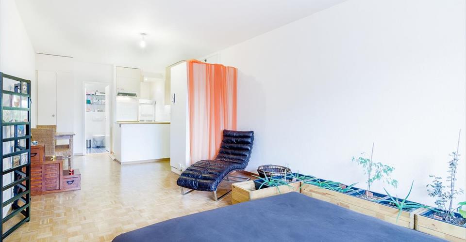 Ce charmant studio équipé se trouve dans le quartier de Plainpalais, à 150 mètres de l’hôpital cantonal de Genève, dans un immeuble refait à neuf en 2001. (Chaufferie, cage d’escalier, toiture, sprinklers installés, canalisations, etc.) Situation : Proche du centre-ville, les transports publics, au pied de l’immeuble, desservent aussi bien, par une ligne directe, la gare, que l’aéroport. L’arrêt du CEVA se trouve à 5 minutes à pied et le centre-ville reste à un jet de pierre. Proche des HUG, l’immeuble est très bien situé. La Poste est à 2 minutes et les différents commerces dans un rayon de 5 minutes à pied. Propriété : construit dans les années 60, ce bâtiment de structure traditionnelle de qualité a été entièrement rénové en 2001. Appartement : Surface PPE: 44 m2 Nbre de pièces : 1 Sanitaires : 1 local douche + 1 wc + lavabo Cave : 1 Ascenseur : oui Étage : Rez supérieur Charges : CHF 100.-/mois Digicode : oui Place de parc : places bleues Il se compose ainsi : Une pièce principale avec partie nuit, ainsi qu’une cuisine agencée équipée (vitro-cérame), un coin buanderie avec lave-linge et sèche-linge en colonne ainsi qu’un coin repas, une salle de bains avec douche et wc, 1 cave. Atouts : Bon investissement vu la situation géographique du studio. Arrêt de bus devant l’immeuble avec lignes de bus directes qui mènent à l’aéroport, à la gare et au centre-ville. A 5 minutes à pied de la gare du CEVA de Champel et à deux pas de l’hôpital cantonal de Genève. Prix : CHF 690’000.- Informations et visites Thierry (7/7) SEGIMO SA – Groupe immobilier www.segimo.ch Hotline : 0848 007 001