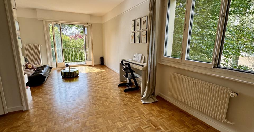 Très bel appartement de 3 chambres et un bureau, avec un alcon, idéalement situé dans le quartier de Chailly. L’appartement fait partie d’une petite co-propriété, bien entretenue. Environnement parfaitement calme et verdoyant, aucun vis à vis. Beau jardin commun avec petits jardins potagers. Ce bien de qualité est distribué comme suit : un grand hall d’entrée avec armoires murales cuisine, salle à manger spacieux salon avec sortie sur le balcon (exposition sud-ouest) 3 lumineuses chambres de belles dimensions, hauts plafonds de 270 cm 1 bureau salle de bains (baignoire et douche, 2 lavabos, WC) WC visiteurs. Magnifique jardin joliment arboré d’env.1630 m2 fait partie de la PPE. L’appartement est en bon état général, parquets vitrifiés, sols en marbre, fenêtres bois métal avec verre isolant. La cuisine a été rénovée en 2018. Un rafraîchissement de peinture est à prévoir. Le bâtiment a été rénové et bien entretenu. Il est au bénéfice d’un toit solaire complet avec panneaux photovoltaïques. Le surplus, revendu aux SIL, génère un bénéfice de 1’000.- chf par année pour l’appartement. La chaudière est récente. Fond de rénovation conséquent (env. 80 000 chf). Ce bien comprend deux caves d’environ 6 m2, un local à vélo et une place de parking extérieure dans le chemin privatif devant l’immeuble. Des places de parc réservées à la PPE sont disponibles. Toutes les commodités du centre de Chailly (bus, commerces) sont à 600 m. Le bus n° 42 est à 100 m. Pour tout complément d’informations et visites: Mme Pavla Bortolotti Point d’Ancrage Immobilier