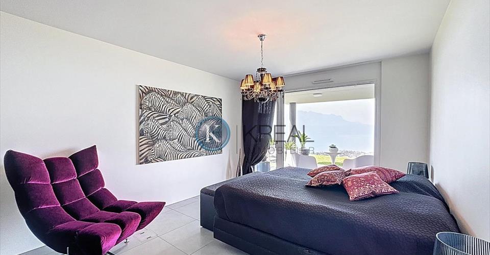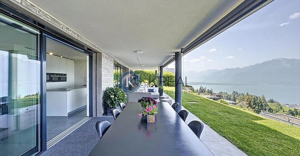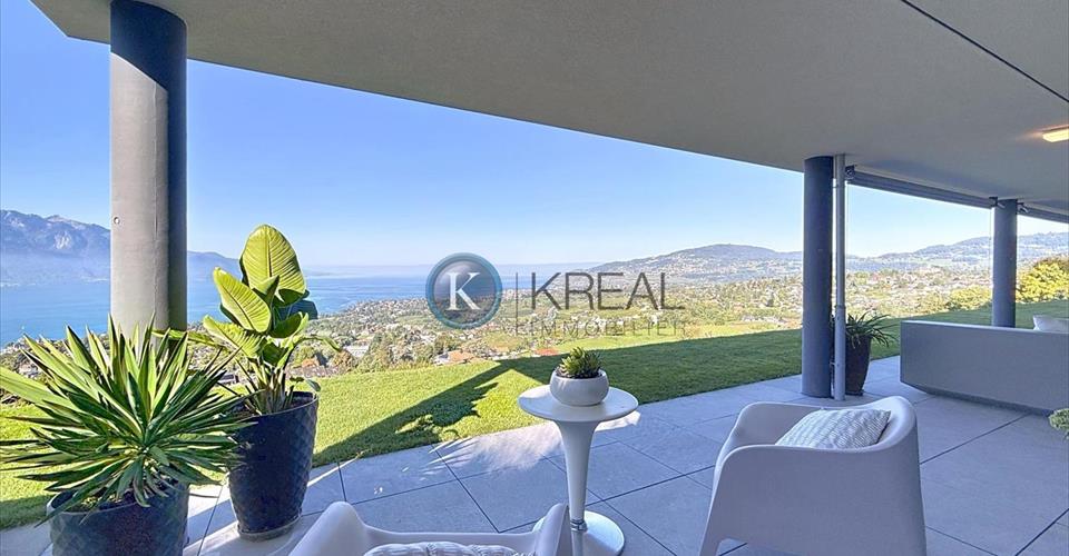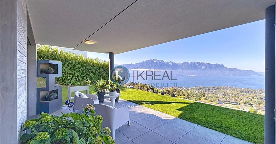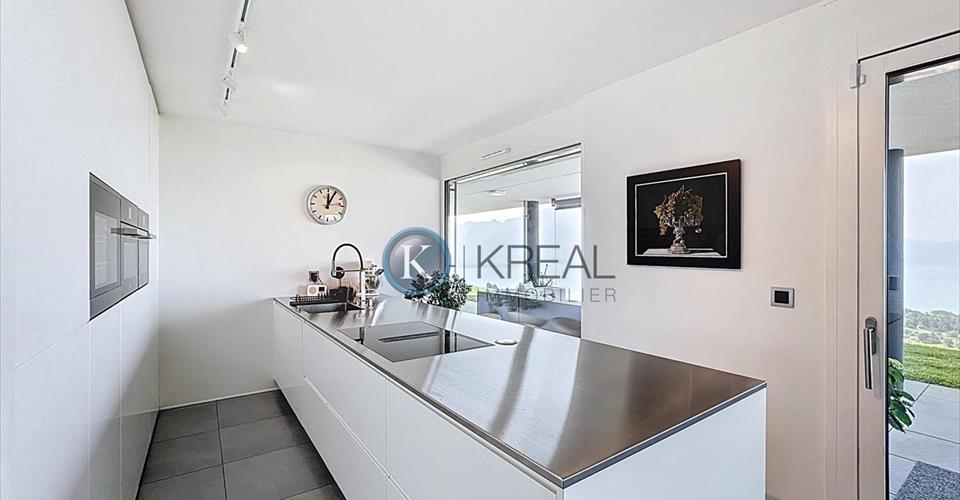 Situé à Chaulin, un hameau pittoresque rattaché à la commune de Montreux, ce bien unique prend place dans un quartier résidentiel paisible, à deux pas du village de Chernex. Implantée dans un environnement naturel préservé, la résidence « Le 77 » allie modernité architecturale, élégance et discrétion. Cette réalisation intimiste comprend seulement quatre logements. L’appartement proposé, un 3.5 pièces occupant la totalité du rez-de-jardin, bénéficie d’une situation privilégiée, garantissant calme, intimité et une vue dégagée exceptionnelle sur le lac Léman et les Alpes. Grâce à sa surface pondérée de 137 m², l’espace de vie de plus de 57 m² se déploie avec générosité, accentué par de grandes baies vitrées qui inondent chaque pièce de lumière naturelle. L’aménagement intérieur, entièrement conçu sur mesure, reflète un haut niveau d’exigence : matériaux nobles, finitions soignées et équipements haut de gamme. La cuisine, pensée comme un véritable espace culinaire, s’habille d’un plan de travail en inox, d’appareils Miele dernière génération (four traditonnel, four à vapeur, plaque à induction, lave-vaisselle, cave à vin, hotte intégrée, réfrigérateur spacieux), et de choix de design issus des enseignes Sanitas Troesch et Saneo. Les salles d’eau et les équipements sanitaires signés Villeroy & Boch ajoutent une touche de raffinement supplémentaire. À l’extérieur, le bien séduit tout autant : une terrasse couverte de 66 m², un jardin plat de 181 m², ainsi qu’un espace naturel supplémentaire de 470 m², forment un ensemble paysager privatif de 717 m², parfaitement intégré à la topographie du lieu. La technologie se met ici au service du confort et de la durabilité : chauffage géothermique par pompe à chaleur, système de free cooling pour les journées estivales, ventilation simple flux, toiture végétalisée, façade ventilée en bois? Chaque élément a été pensé pour respecter l’environnement tout en assurant un bien-être optimal. Deux places de stationnement couvertes ainsi qu’une cave, accessible depuis l’intérieur comme directement depuis le jardin, complètent idéalement cet objet rare. Ne manquez pas cette opportunité unique : contactez-nous pour organiser une visite !