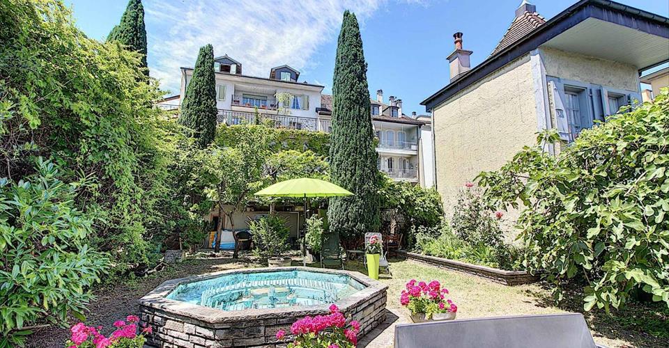 Le quartier de Rive situé en bordure du Lac au pied du château, offre un lieu de vie agréable et animé au gré des diverses manifestations programmées tout au long de l’année. Avec sa vue imprenable sur le Lac et les Alpes, ce loft d’une surface d’env. 240 m² est un lieu connu dans la commune, avant par le passé abrité un musée, une galerie d’art, un studio d’enregistrement et dernièrement le théâtre “Le Funambule”. Ce grand espace ouvert se prêt à l’aménagement d’un loft ou permet la création de pièces au gré du futur acquéreur. Il est complété par un dépôt de 71.50 m² situé au sous-sol. Informations importantes : – le bien doit faire l’objet de rénovations. – la surface du rez-de-chaussée étant traversante, les accès sont possibles depuis la Rue de Rive ou depuis le côté Lac. – Cet objet est dépourvu de places de parc, il est néanmoins possible de louer des emplacements au sein du parking de la Duche, situé à 100 m pour un loyer mensuel de CHF 240.-/ par place. *** Fonds de rénovation au 31 décembre 2024 – CHF 31’526.10 Charges mensuelles (y compris chauffage/eau-chaude et attribution au fonds de rénovation) CHF 1’225.-. Impôt foncier : 1.5 ‰