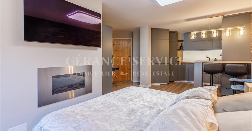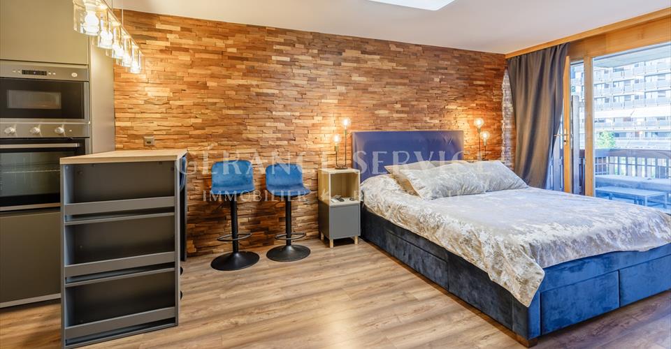 Ce studio rénové, situé au premier étage, bénéficie d’un emplacement privilégié au cœur de Villars-sur-Ollon, à proximité immédiate de toutes les commodités. Il offre un espace de vie bien agencé, avec une cuisine entièrement équipée. Une porte-fenêtre donne accès à un balcon orienté nord-est. La salle de bain, entièrement carrelée, dispose d’une douche à l’italienne, d’un lavabo et d’un WC. Un studio chaleureux, idéal pour vos séjours à la montagne.