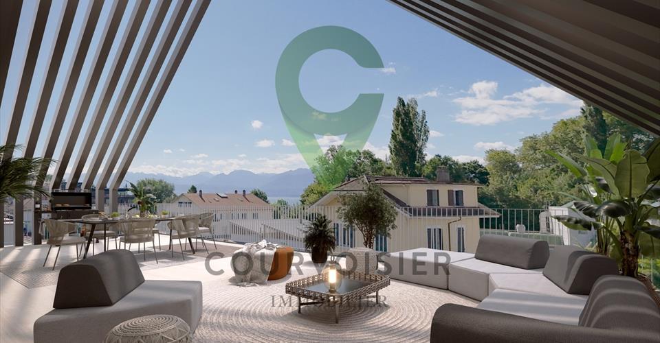Un art de vivre contemporain à Rolle La Résidence NAMAYA incarne un subtil équilibre entre architecture moderne, qualité de vie durable et environnement d’exception. À seulement quelques minutes à pied du Lac Léman et du centre animé de Rolle, cette adresse rare séduira aussi bien les familles que les actifs et les esthètes en quête de sérénité et de raffinement. Pensée comme une oasis urbaine à taille humaine, NAMAYA se compose de deux immeubles élégants, organisés autour d’un parc paysager avec zones de détente et aire de jeux pour enfants, favorisant la convivialité et le calme. Huit appartements lumineux et exclusifs La résidence comprend uniquement 8 appartements, du 2.5 au 5.5 pièces, tous généreusement conçus et prolongés par de spacieuses terrasses plein sud, des balcons ou des jardins privatifs. Les attiques bénéficient d’un accès direct par ascenseur. Des matériaux nobles, des finitions soignées, une domotique intuitive et un chauffage à distance confèrent à chaque logement un confort moderne et écoresponsable. Toutes les installations répondent aux standards actuels de performance énergétique, garantissant un habitat sain, économique et durable. Les acquéreurs auront par ailleurs la possibilité de personnaliser leur intérieur avec l’appui d’une équipe d’architectes, pour un accompagnement sur mesure inclus. Disponibilités et lots La livraison est prévue à l’été/automne 2027. Lots disponibles : Lot A1 – Rez – sud-ouest – 4.5 pièces – 114 m² + terrasse 26 m² + jardin 77 m² – CHF 1’640’000.- Lot A2 – Rez – sud-est – 2.5 pièces – 60 m² + terrasse 16 m² – CHF 870’000.- Lot A3 – 1er étage – sud-ouest – 3.5 pièces – 82 m² + balcon 15 m² – CHF 1’145’000.- Lot A4 – 1er étage – sud-est – 3.5 pièces – 82 m² + balcon 15 m² – CHF 1’160’000.- Lot A5 – Combles – 3.5 pièces + mezzanine – 155 m² + terrasse 68 m² – CHF 2’175’000.- Lot B6 – Rez – 5.5 pièces – 148 m² + terrasse 48 m² + jardin 131 m² – CHF 2’090’000.- Lot B7 – 1er étage – 5.5 pièces – 142 m² + balcon 35 m² + jardin 82 m² – CHF 1’990’000.- Lot B8 – Combles – 3.5 pièces + mezzanine – 124 m² + terrasse 56 m² – CHF 1’770’000.- RÉSERVÉ Située le long de la Route du Lac, la résidence profite d’un accès rapide aux commerces, aux écoles et aux transports, tout en offrant un cadre de vie paisible et verdoyant. Que vous soyez à la recherche d’un cadre de vie privilégié ou d’un placement immobilier pérenne, NAMAYA représente une opportunité rare sur la Côte lémanique. (Les images sont non contractuelles et à titre indicatif, destinées à illustrer le style et les finitions projetés.)