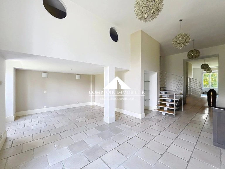 Au sein d’une bâtisse datant de 1940 et réhabilitée en 2006, située dans une résidence privée au cœur d’un parc de plus de 2 hectares, cet appartement T4 d’environ 188m² comprend: