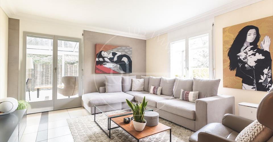 Quand le confort et l’intimité se marient ! Délicieuse maison individuelle entièrement rénovée, située sur la commune de Vessy, dans un quartier résidentiel calme et familial. Offrant une charmante pièce à vivre bénéficiant d’une belle cheminée et s’ouvrant sur une belle et lumineuse véranda, cette villa vous permettra de profiter de votre quotidien paisiblement, tant à l’intérieur qu’à l’extérieur. En effet, sa belle parcelle dotée d’une grande terrasse rénovée et d’un jacuzzi donnant sur le jardin joliment arboré et clôturé, vous offriront de magnifiques moments en famille ou entre amis tout au long de l’année. Autre atout de ce bel objet, son sous-sol, baigné de lumière, qui propose deux belles pièces supplémentaires , une salle de douche avec toilettes ainsi qu’un dressing et une véritable cave à vin. Ne passez pas à côté d’une découverte de cette villa, elle ne manquera pas de vous séduire grâce à son élégance et son entretien impeccable.
