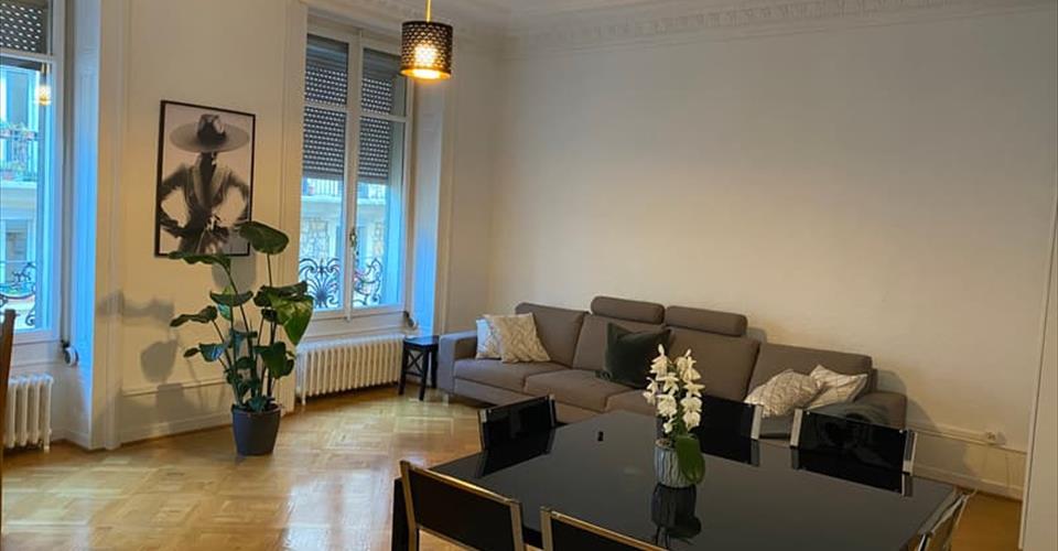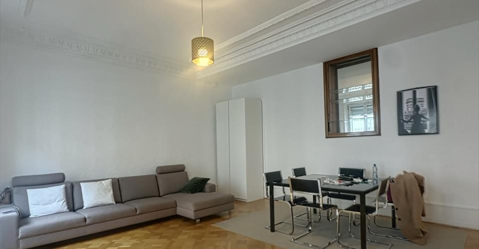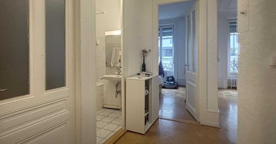 Charmant appartement de 80 m² situé au 2ème étage d’un immeuble avec ascenseur, au cœur du quartier vivant des Pâquis. Caractéristiques principales : Superficie : 80 m² 3 pièces lumineuses avec belles hauteurs sous plafond Salon spacieux avec parquet et grandes fenêtres Cuisine indépendante entièrement équipée 1 chambre confortable avec rangements intégrés Salle de bain avec baignoire et espace buanderie WC séparés Balcon avec vue latérale sur le lac Immeuble avec ascenseur Points forts : Situation idéale à deux pas du lac et des Bains des Pâquis Proximité immédiate des commerces, restaurants, transports publics et gare Cornavin Quartier dynamique, central et recherché Disponibilité : immédiatement Cet appartement allie charme, espace et situation exceptionnelle au cœur de Genève, avec l’avantage rare d’une vue sur le lac.