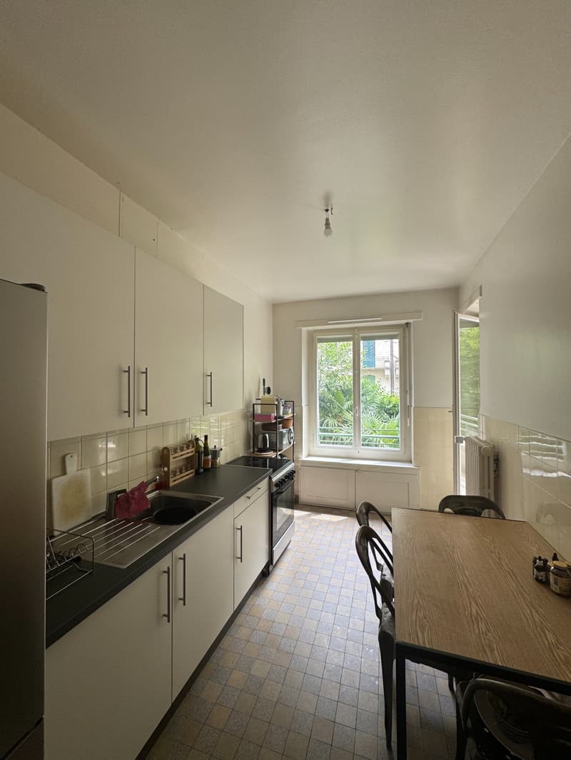 I am offering a 19 m² furnished room for sublet for 6 months, renewable, in a 3.5-room apartment located in the highly sought-after and quiet residential area of Champel