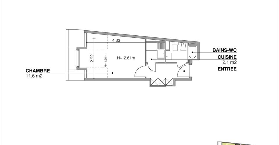 GENEVE CENTRE – 1 pièce et kitchenette au 4ème étage, hall avec rangements, kitchenette semi-équipée (frigo, plaques), salle de bains/w.c., cave et buanderie à disposition. L’immeuble est équipé du téléréseau individuel. Situé proche de toutes commodités.