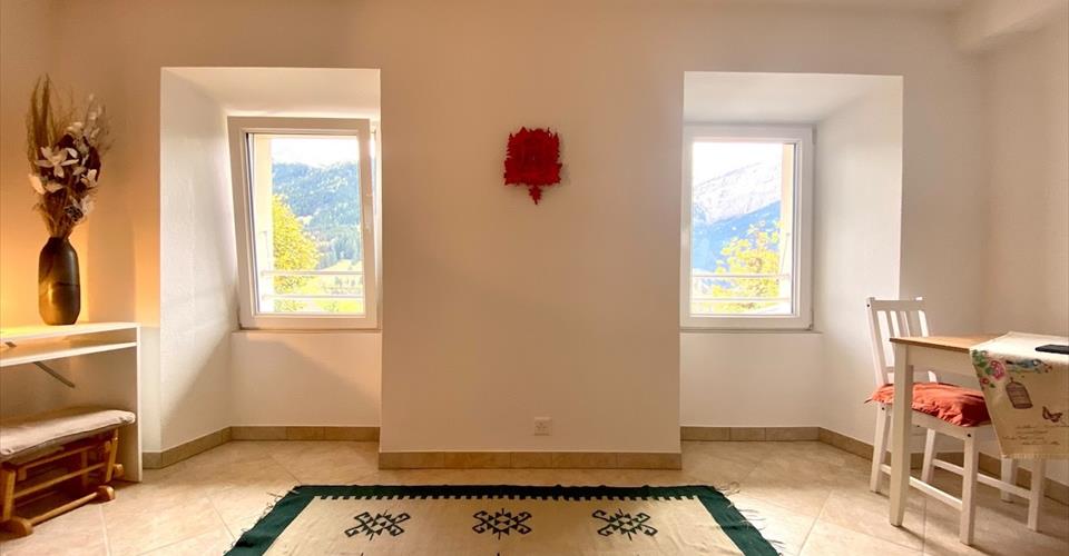 La Résidence Beau-Séjour est située à 150m du centre de Gryon et à 500m de la gare de Gryon. Un arrêt de la navette qui amène aux télécabines de la Barboleuse vous emmenant sur le domaine skiable de Gryon Villars Les Diablerets, se trouve à 50m. Studio meublé comprenant : 1 kitchenette avec 2 plaques de cuisson, frigo, séjour avec coin à manger, un grand et confortable canapé lit (140x200cm, matelas 17cm), une penderie à l’entrée et une armoire, petit coin bureau, 1 salle de bain avec grande douche. Belle vue sur les montagnes (Muveran et Miroir de l’Argentine). Le studio se loue pour la saison d’hiver : 3 mois : CHF 3’915.- 4 mois : CHF 4’656.- Buanderie commune avec lave et sèche-linge à prépaiement. Rangement Vélo et Casier à Ski disponibles. Pas de place de parc attribué au logement, parking public à proximité. Pas de télévision. Wifi