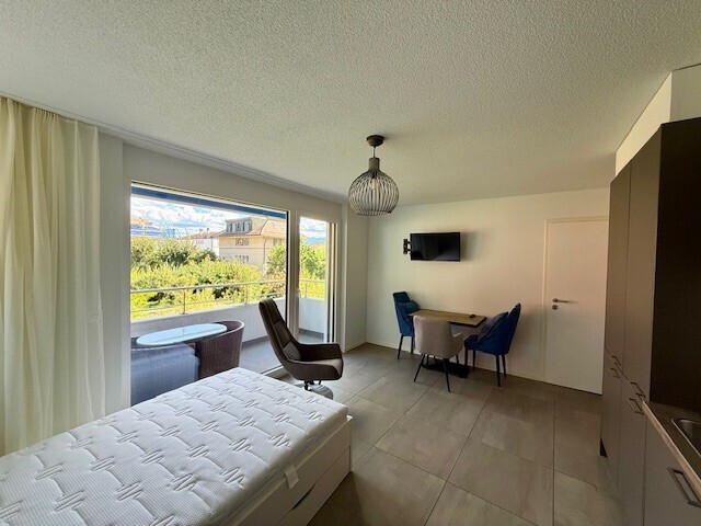 Magnifique studio meublé Idéalement situé proche du CHUV, des transports publics, commerces et de toutes commodités. Disponible de suite Descriptif : 1 pièce, cuisine ouverte équipée avec réfrigérateur, four, 2 plaques vitrocéramique, hotte de ventilation, salle de douche / WC, un jardin et une cave. Buanderie commune. Aménagement : Lit avec tiroir de rangement, commode, fauteuil, chaise, table, rideaux, tables gigognes, téléviseur écran plat 32″, machine à café Nespresso, tableau, mobilier de jardin. Loyer mensuel de CHF 1’290.- + CHF 80.- meubles + CHF 40.- de charges forfaitaire comprenant : l’électricité, l’abonnement au télé-réseau lausannois ainsi que l’utilisation du système de connexion internet avec code de sécurité individuel par studio. Visites : Mme Ilanga Candidature complète à adresser à