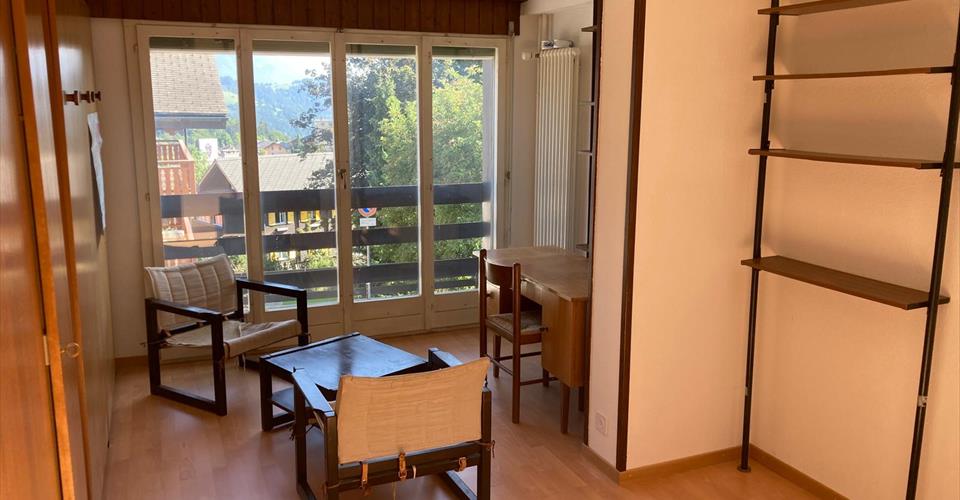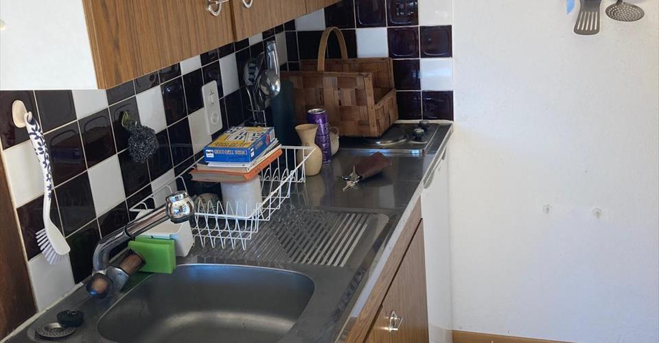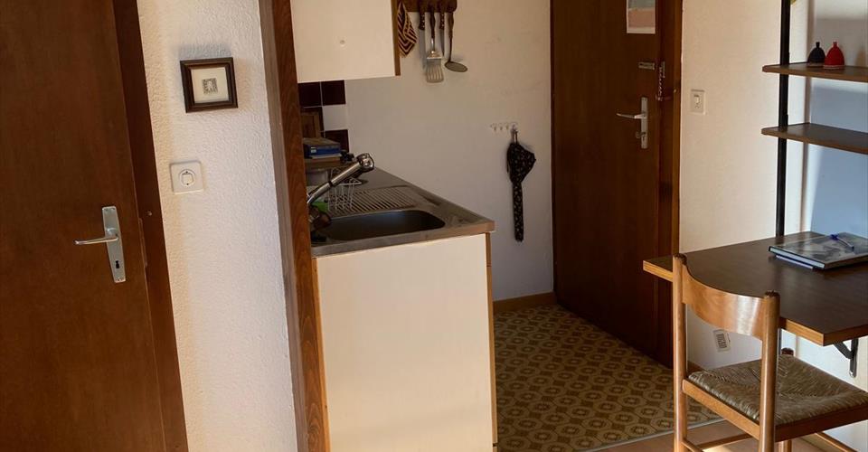 Studio au 1er étage comprenant une petite cuisine, une pièce à vivre et une salle de douches/WC.