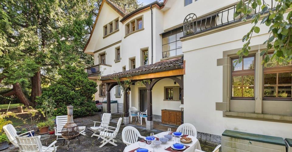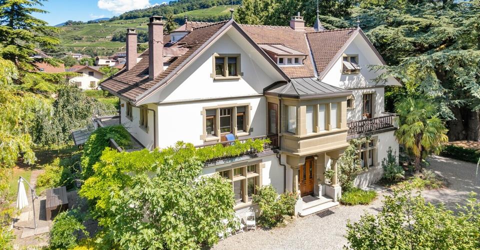 OPPORTUNITE SWITZERLAND SOTHEBY’S INTERNATIONAL REALTY ! La Brocéliande est en tout point un lieu enchanteur. Erigée en 1914, cette majestueuse maison de maître qui a fait l’objet d’une totale rénovation en 2004 dans le respect de son architecture originale, séduira les amoureux de l’ancien à la recherche de tout le confort moderne. Cette vaste propriété est nichée dans un parc remarquable, un écrin extraordinaire d’arbres séculaires et une grande diversité d’arbustes fruitiers. – Cadre enchanteur, parc arboré de 2779m2 – 3 niveaux + 2 sous-sols et environ 450 m² habitables – Matériaux nobles, cachet immense! – 6 chambres à coucher – Possibilité pour activité indépendante