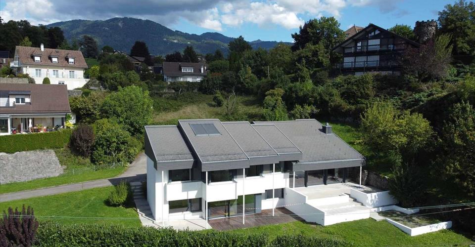 Magnifique propriété de 10.5 pièces d’environ 425 m² utiles, située dans un quartier très calme et bénéficiant d’une situation exceptionnelle avec vue sur le lac. Construite en 1974 sur une parcelle d’environ 2’300 m², elle a été entièrement et très soigneusement rénovée en 2015 avec des équipements techniques et des matériaux de finition d’excellente qualité, apportant un confort sans pareil. Non loin du centre-ville de Vevey, des écoles publiques et privées et des transports publics, cette villa est idéale pour une famille recherchant un cadre privilégié et une habitation “unique”. Une salle de jeux, un sauna, un hammam, un garage double et plusieurs places de parc extérieures complètent la propriété.