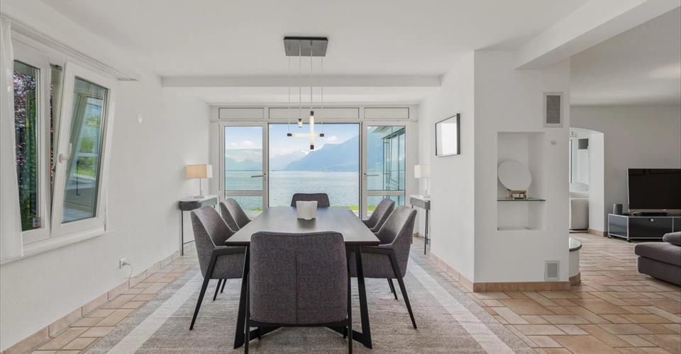 En exclusivité : Offrez-vous un cadre de vie unique avec cette propriété rare, située en première ligne du lac, avec accès direct au lac pour des moments de détente ou de loisirs. Elle vous séduira avec sa vue imprenable sur le lac et les montagnes. Avec ses 10.5 pièces, 7 chambres et des finitions de qualité, elle offre un espace de vie spacieux pour toute la famille. Que vous cherchiez une résidence principale, une résidence secondaire ou un investissement de prestige, cette maison au bord du lac est une opportunité à ne pas laisser passer. Divers : Volume ECA de 925 m3. 1 garage de 28 m2 se situant à 120 m. à l’Est de la villa. 1 garage de 16 m2 dans la PPE. Servitude permettant d’arriver pratiquement de plain-pied au niveau du rez inférieur . 2 places de parc extérieures. 1 cabanon poubelles niveau route. Echelle donnant accès au lac. Alarme. Vitres isolantes récentes. Contactez-nous sans tarder pour une visite et découvrez par vous-même ce cadre enchanteurs !