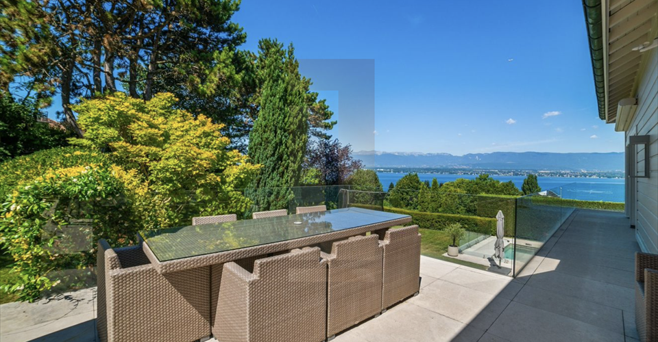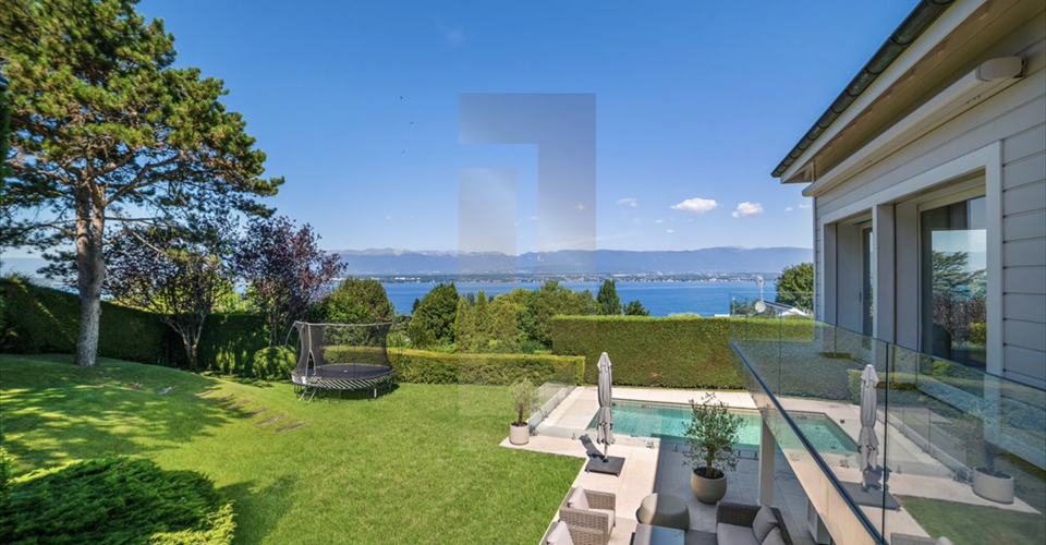 Située sur une parcelle de près de 1’900 m², cette maison rénovée avec soin offre un cadre de vie privilégié, alliant confort, élégance discrète et une vue spectaculaire sur le lac et le Jura. Avec environ 600 m² répartis sur trois niveaux reliés par un ascenseur, cette propriété a été pensée pour une vie familiale. Grâce à sa configuration en pente douce, le niveau inférieur bénéficie d’un accès direct au jardin et aux terrasses, créant une continuité naturelle entre intérieur et extérieur. Au rez-de-chaussée: une belle entrée, un vestiaire avec toilettes visiteurs, une grande cuisine conviviale avec coin repas et bureau intégré, un vaste salon double avec cheminée, prolongé par une grande terrasse, une salle à manger et une chambre avec salle de bain attenante. À l’étage: une suite parentale bénéficiant d’un dressing, d’une salle de bain privée et d’une terrasse surplombant le jardin, une chambre supplémentaire avec sa salle de bain privée. Un accès direct mène à un toit-terrasse offrant une vue imprenable sur le lac. Le rez inférieur: une chambre d’amis avec salle de bain et terrasse, une grande salle polyvalente (salon TV ou salle de sport), une buanderie, une cave, les locaux techniques, un espace bien-être avec hammam, douche et accès direct à la piscine extérieure. Un garage double. Clé en main, cette maison au charme doux et aux prestations haut de gamme saura séduire une famille en quête de calme, d’espace et de lumière.
