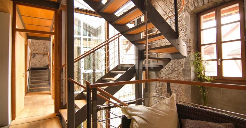Réf: 3784SM Au détour d’une fontaine, jouxtant une cour pavée en retrait de la route principale, découvrez cette magnifique maison du 16ème siècle dont l’enveloppe a été magnifiquement restaurée et l’intérieur réaménagé en 2003. Un projet remarquable conduit de main de maître par le propriétaire actuel et son architecte avec une attention toute particulière apportée a l’utilisation de matériaux de qualité respectant les énergies naturelles, l’apport de lumière dans toute la maison par un puit de lumière lié aux circulations verticales et l’articulation idéale des espaces mariant l’ancien avec le moderne. La maison offre des secteurs distinct, morcelable ou aménageables au gré du preneur: Un bureau , trois chambres a coucher, un atelier, une bibliothèque ,cuisine, cellier et séjour. Un vaste jardin parfaitement orienté complète le lot.