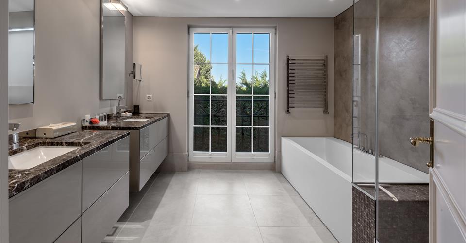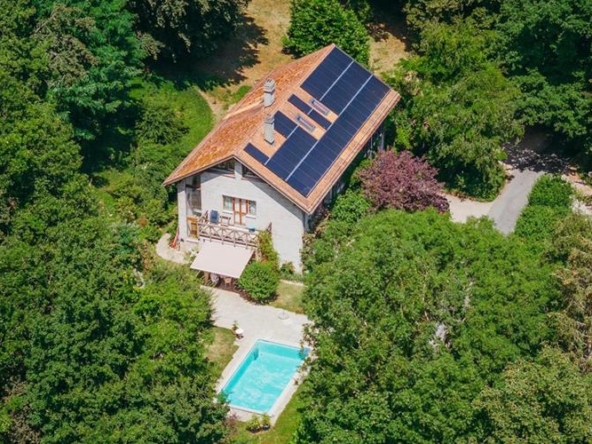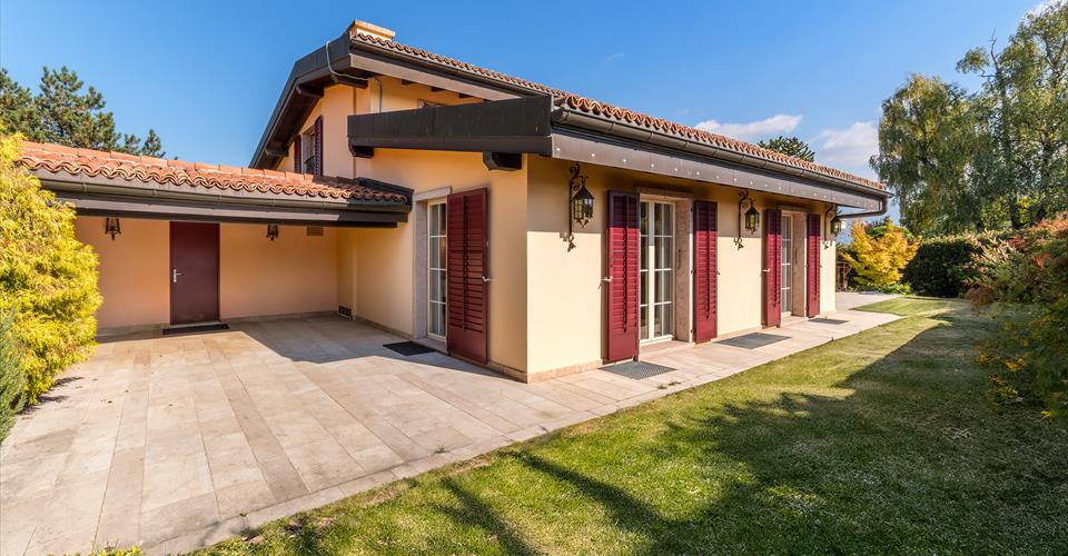 Cette spacieuse maison se situe dans la charmante commune de Bernex, offrant un cadre de vie paisible et verdoyant tout en étant à proximité de toutes les commodités. Édifiée sur une belle parcelle d’environ 800 m², cette maison est semi-individuelle (par les garages) et dispose d’un jardin soigneusement paysagé et clôturé, agrémenté de vastes terrasses qui bénéficient d’un ensoleillement idéal. Rénovée avec soin et des matériaux de haute qualité, cette propriété lumineuse présente de superbes volumes répartis sur trois niveaux. Avec une surface totale d’environ 500 m², dont 400 m² habitables, elle comprend 10 pièces, parmi lesquelles une vaste triple réception avec cheminée, une cuisine moderne entièrement équipée, cinq chambres, un salon de lecture avec bibliothèques, ainsi qu’une grande salle polyvalente, également dotée d’une cheminée. Les finitions soignées et les équipements contemporains garantissent un confort de vie optimal. Un garage de 70 m², deux places de parc extérieures et de nombreux espaces de rangement complètent parfaitement l’ensemble.