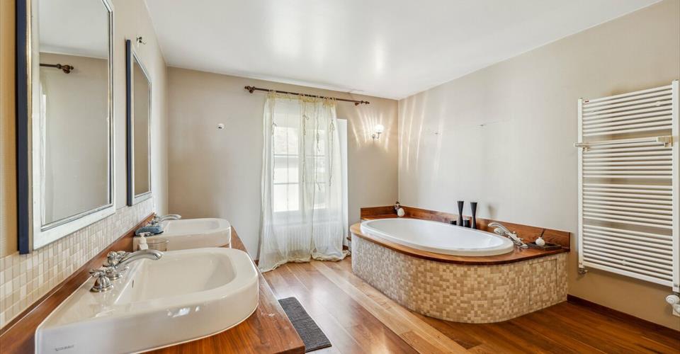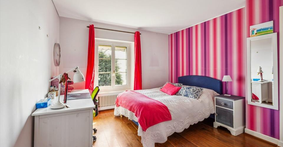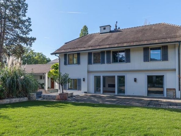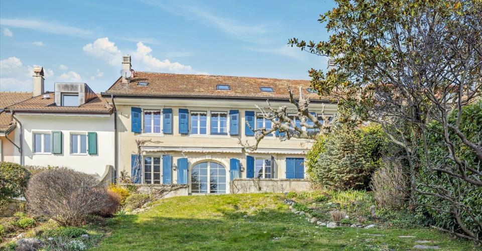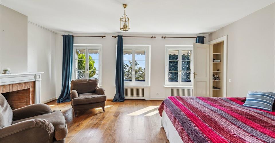 Située de manière idéale, offrant une vue imprenable sur le lac scintillant et les majestueuses montagnes environnantes, cette somptueuse demeure d’une superficie de plus de 400 m² déploie son charme au cœur du village pittoresque de Bougy-Villars, dans un cadre paisible et préservé , à quelques pas seulement de l’auberge locale et d’un arrêt de bus permettant un accès aisé aux gares CFF d’Allaman ou de Rolle. Érigée vers 1870, cette demeure a été entièrement rénovée avec un souci du détail et des matériaux d’exception en 2002, conférant à chaque espace une élégance intemporelle et un raffinement sans pareil. Dès l’entrée, un vaste hall de réception accueille chaleureusement les visiteurs, tandis qu’un majestueux escalier et une galerie ajoutent une touche de grandeur. Le rez-de-chaussée s’ouvre sur un séjour spacieux agrémenté d’une cheminée, baigné de lumière grâce à ses larges portes vitrées, offrant un accès fluide à la terrasse et au jardin luxuriant. Une salle à manger élégante complète cet espace, idéal pour les réceptions. La cuisine, véritable chef-d’œuvre culinaire, allie fonctionnalité et esthétique avec ses équipements de la marque Miele et ses finitions sur mesure, créant ainsi un lieu propice aux festins gastronomiques. À l’étage, cinq chambres généreuses, dont une avec cheminée, ainsi que trois salles d’eau, offrent un havre de paix et de confort à chaque occupant. Les combles, transformés en un vaste salon/bureau éclairé par de nombreuses lucarnes, offrent un espace polyvalent et lumineux, tandis qu’une pièce attenante, actuellement utilisée comme buanderie, offre la possibilité d’aménager une salle d’eau supplémentaire selon les besoins . Un garage et quatre places de parking extérieures complètent ce bien d’exception, tandis qu’une cave à vins authentique, creusée dans le sol, ajoute une touche de caractère unique à la propriété. L’entretien méticuleux et le choix de matériaux durables garantissent non seulement l’esthétique intemporelle de cette demeure, mais aussi une tranquillité d’esprit pour les années à venir. Offrant une combinaison parfaite entre luxe, confort et emplacement privilégié, cette propriété d’exception incarne le charme authentique du village de Bougy-Villars, offrant à ses résidents une expérience de vie incomparable, avec une vue panoramique saisissante sur le lac Léman.