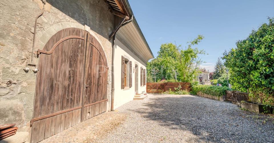 Située au coeur du charmant village de Cartigny, cette maison historique construite en 1772 séduit par son caractère authentique et son cadre. Implantée dans un environnement paisible, elle allie la sérénité de la campagne à une proximité des commodités locales tel que commerces, écoles et transports, offrant ainsi un style de vie à la fois pratique et apaisant. Cette propriété a traversé les époques en conservant son charme d’origine. Les rénovations ont sublimé ses éléments architecturaux emblématiques, comme ses poutres apparentes et ses fenêtres anciennes, tout en intégrant des équipements modernes. Nichée sur une vaste parcelle joliment arborée d’environ 1’400 m², elle propose une généreuse surface habitable de 280 m² et un potentiel exploitable de plus de 450 m² utiles grâce à ses combles aménagés et sa grange attenante au fort potentiel. Le rez-de-chaussée, spacieux et lumineux, comprend : – Une cuisine équipée avec coin repas – Deux salons – Une spacieuse salle à manger – Une salle de bain – Un WC visiteurs – Les cheminées, réparties dans les espaces de vie, ajoutent une note chaleureuse et conviviale. Le 1er étage se compose comme suit : – Trois chambres à coucher – Une seconde cuisine – Un espace de vie supplémentaire – Une salle de bain La propriété dispose de combles aménagés, offrant de nombreuses possibilités de réaménagement pour répondre aux besoins et goûts des futurs propriétaires. Enfin, une grange attenante d’environ 70 m² par niveau constitue une opportunité remarquable. Elle peut être transformée en extension de la maison principale ou en un logement indépendant, laissant libre cours à vos projets. Cette maison est une rareté qui conjugue volumes généreux, charme intemporel et potentiel infini. Elle promet un cadre de vie unique où l’histoire et la modernité s’harmonisent à la perfection.