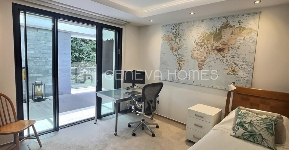 Nichée dans le quartier très recherché de Conches, cette villa d’exception se situe dans un environnement résidentiel paisible en bordure de forêt. Elle offre un grand espace de vie, complétés par une généreuse terrasse de 300 m² avec piscine chauffée. Le rez-de-chaussée s’ouvre sur un hall accueillant, une cuisine contemporaine entièrement équipée et un vaste salon avec cheminée. De grandes ouvertures donnent un accès direct à la terrasse et à la piscine. Ce niveau comprend également une somptueuse suite parentale avec deux dressings et deux salles de bains attenantes. À l’étage, trois chambres à coucher, chacune avec salle de bains privée et dressing, s’ouvrent sur une terrasse privative. Le sous-sol propose une chambre, une salle de jeux et bureau. Ce niveau est également dédié au bien-être et aux loisirs, avec une salle de sport, un sauna, un hammam, une salle de cinéma ainsi qu’une cave aménagée.