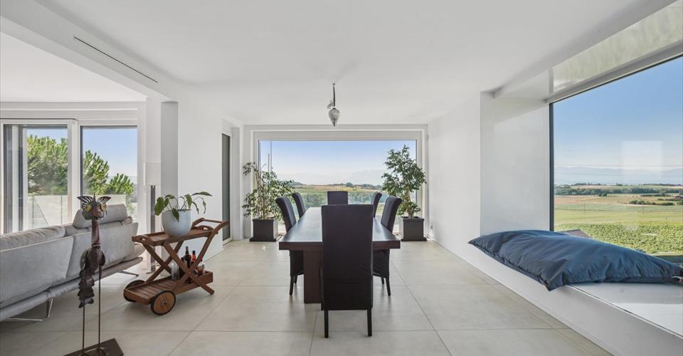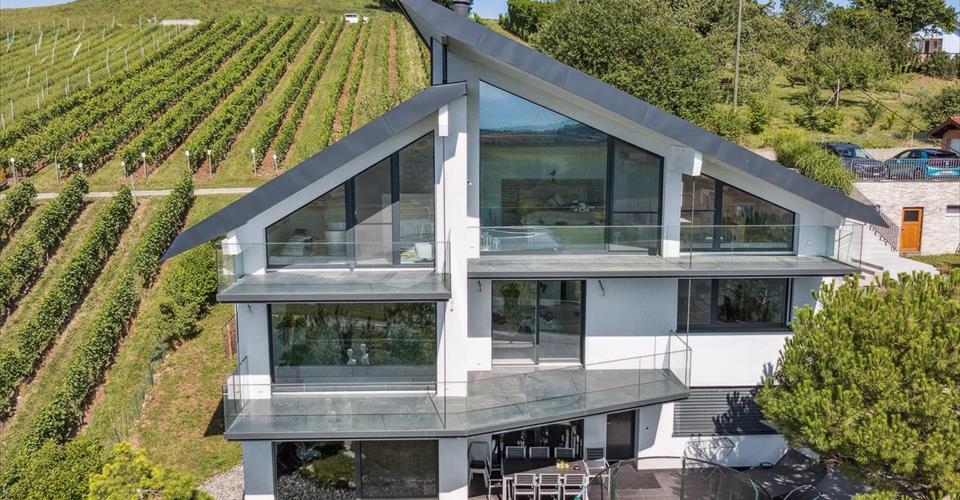 Nichée au coeur d’un environnement naturel privilégié, cette maison de prestige sur 3 niveaux d’environ 310m2 vous offre une vue imprenable sur les vignes , un grand jardin paysager, et des prestations haut de gamme pensées par un architecte renommé. Au rez-de-chaussée, un appartement indépendant de 3.5 pièces, actuellement loué, offre un excellent rendement locatif ou la possibilité d’un espace d’accueil ( famille, invitées, profession libérale…. L’étage principal comprend un hall d’entrée, un vaste salon, salle à manger lumineuse prolongé par une grande cuisine ouverte. Un second étage avec un espace nuit très bien réparti, une salle de bain, 3 belles chambres dont une chambre parentale avec sa salle de bain privée et son dressing. La chambre parentale comprend une mezzanine avec un très bel espace supplémentaire. A l’extérieur, vous profiterez d’un grand jardin arboré, pensé pour accueillir une piscine ( déjà intégrée aux plans par l’architecte) offrant ainsi un potentiel d’aménagement haut de gamme. Il y a également une cuisine d’été équipée. Le terrain comprend également des vignes en production, parfaites pour amateurs ou passionnés de vin. Un local isolé, équipé CVSE de +70m2 prêt à être aménagé pour la vinification, ou stockage.. Vous serez séduit par ses volumes lumineux, ses finitions de qualité et son agencement fluide entre intérieur et extérieur. La villa allie confort moderne, design raffiné et cadre de vie en nature.