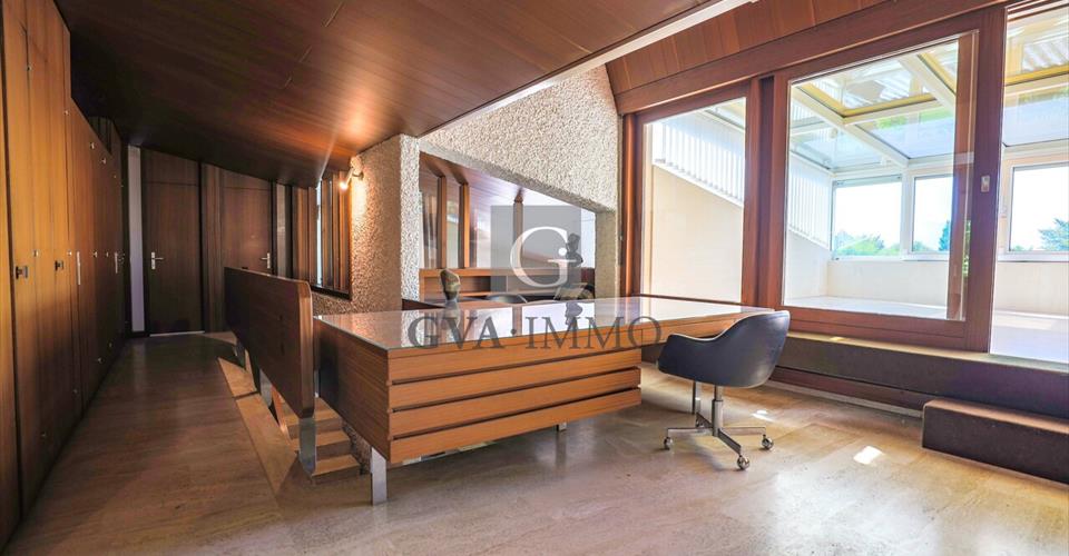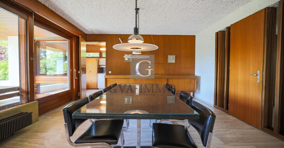 Découvrez cette propriété exceptionnelle, une véritable œuvre d’art conçue par un architecte suisse renommé dans les années 70. Nichée au cœur d’un quartier paisible, cette maison unique ne se contente pas de proposer un espace de vie ; elle incarne un style et une vision qui transcendent le temps. – Design Intégré : Chaque élément a été méticuleusement pensé, non seulement pour sa fonctionnalité, mais aussi pour son esthétique. Le mobilier intérieur a été créé en parfaite harmonie avec l’architecture de la maison, offrant une expérience de vie cohérente et élégante. – Luminothérapie : De grandes fenêtres inondent l’espace de lumière naturelle, offrant une atmosphère chaleureuse et accueillante tout au long de la journée. Profitez de vues imprenables sur le jardin soigneusement paysagé qui entoure la maison. – Matériaux Nobles : Construit avec des matériaux de qualité supérieure, le travertin au sol, l’acajou pour les boiseries, le béton brut et les touches de métal créent une ambiance à la fois moderne et chaleureuse. L’élégance des finitions témoigne du savoir-faire artisanal de l’époque. – Espaces de Vie Ouverts : La disposition ouverte fait de cet espace de vie un lieu parfait pour recevoir et passer des moments en famille. Les espaces communiquent aisément, tout en préservant une certaine intimité. – Emplacement Idéal : Située à proximité de toutes les commodités modernes et à quelques minutes des transports en commun, cette maison offre le meilleur des deux mondes : tranquillité et accès facile à Vésenaz et Genève. Nichée dans un quartier de villas verdoyant, cette propriété allie confort et tranquillité. Avec une vue dégagée sur le magnifique jardin et un accès facile au lac, c’est un havre de paix idéal pour les amateurs de nature. Cette maison spacieuse offre environ 400 m² de surface habitable sur un terrain de plus de 2000 m². Elle comprend 10 pièces généreuses, dont 5 chambres à coucher, parfaites pour une grande famille. Chaque coin de cette maison respire le charme et l’élégance. Au rez-de-chaussée, on trouve un hall d’entrée avec vestiaire, un WC visiteurs, un immense bureau, une cuisine entièrement équipée, une salle à manger avec terrasse, ouverte sur le séjour, comportant une cheminée intérieure et extérieure avec accès direct sur le jardin, une chambre avec sa salle de bains comprenant une douche et sortie indépendante. A l’étage, une chambre à coucher parentale avec sa salle de bains en suite et balcon, deux grandes chambres à coucher pouvant être séparées en quatre chambres, une salle de bains, un WC séparé, une galerie avec bureau ainsi qu’un jardin d’hiver en toiture. Au rez inférieur, se trouve un appartement indépendant avec cuisine, coin repas et séjour, un jardin d’hiver donnant sur le jardin, une chambre avec sa salle de bain. On trouve au sous sol une cave, une buanderie, un local chaufferie ainsi qu’un atelier. Un garage avec deux places disponibles, un parking extérieur de trois places et un cabanon de jardin complètent ce bien. La propriété a été rénovée dans les règles de l’art, quelques travaux sont à prévoir. Pourquoi choisir cette propriété ? Acquérir cette maison, c’est entrer dans un chapitre de l’histoire architecturale et profiter d’une qualité de vie inégalée. Que vous soyez amateur d’architecture, passionné de design ou simplement à la recherche d’un foyer unique, cette propriété est faite pour vous. Ne manquez pas cette occasion rare d’acquérir une maison qui allie fonctionnalité, esthétique et histoire. Contactez-nous dès aujourd’hui pour organiser une visite et laissez-vous séduire par le charme indéniable de cette propriété des années 70 !