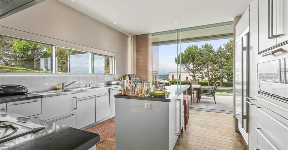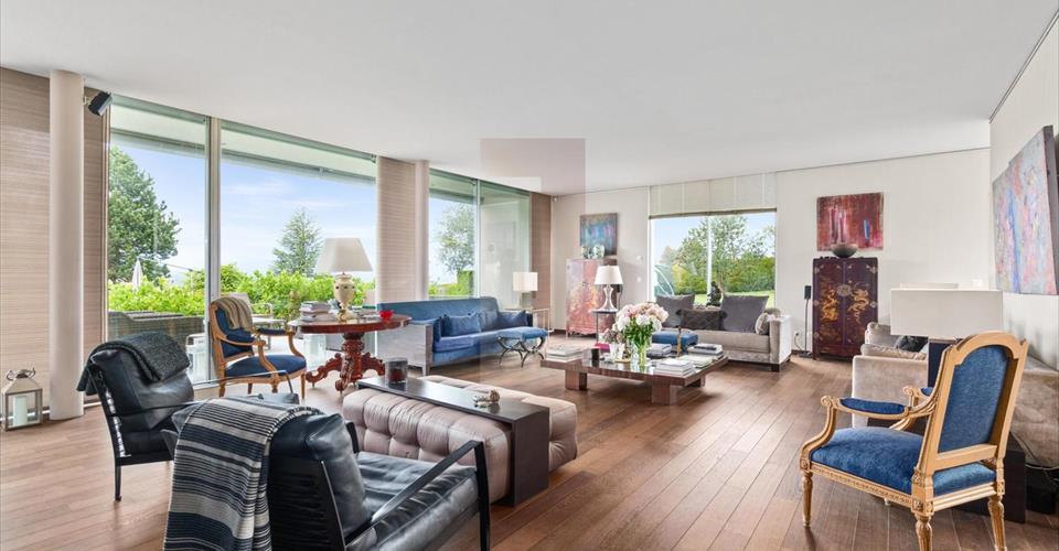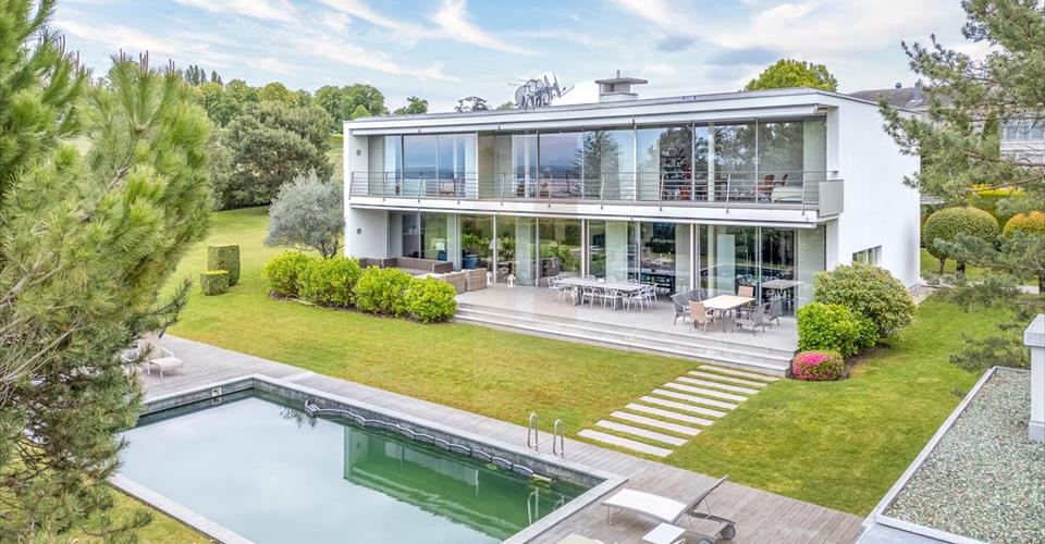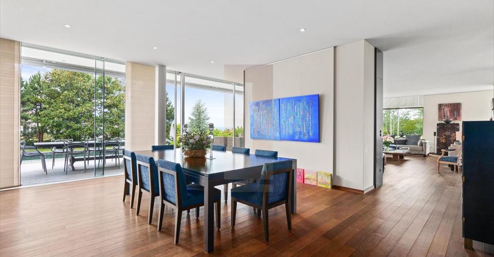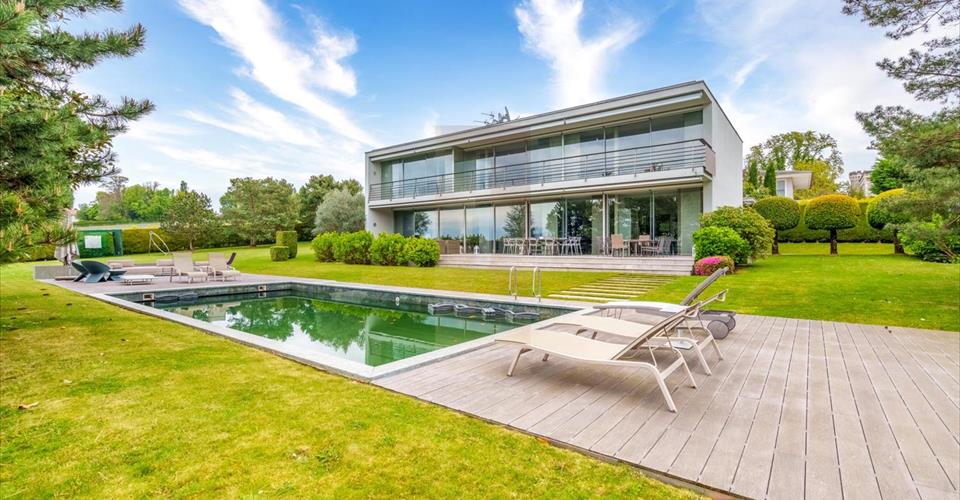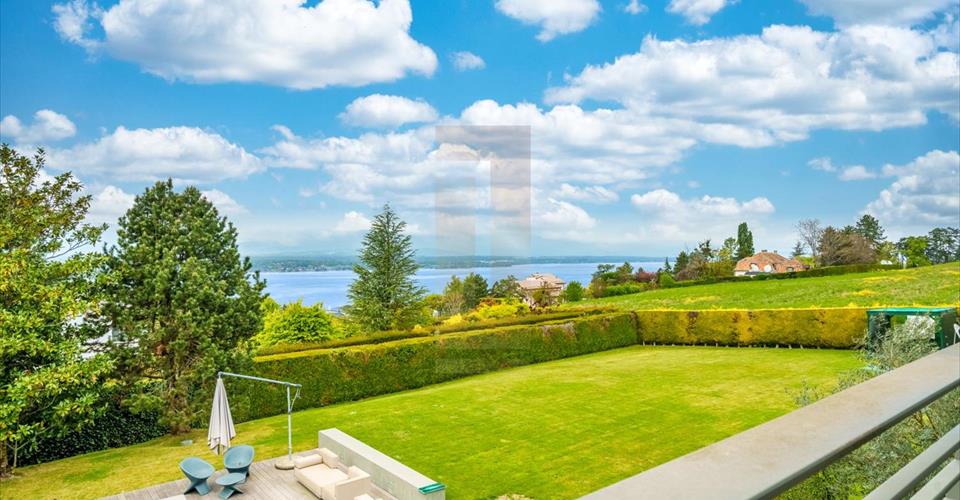 Maison d’architecte de plus de 600m2 construite sur 3 niveaux avec vue lac, sise sur l’une des plus magnifique parcelle de Cologny de plus de 3’300m2. Le rez-de-chaussée est composé d’un toilette invités, d’une grande cuisine Bulthaup toute équipée, d’une grande salle à manger attenant à un grand salon, et d’un bureau. Une terrasse en teck de 85m2 a été emménagée au calme avec vue lac, espace piscine, lounge et cabanon. Le 1er étage est composé de 3 grandes chambres à coucher avec salle de bains en-suite et une master bedroom avec dressing et un grand balcon de 29m2 avec vue lac. Le sous-sol de 160m2 est refait à neuf pour imaginer un espace gym & TV, 2 chambres avec salle de bains, une cave à vin et un bureau. Le tout est complété par un grand box intérieur pour 2 voitures et de et 2 places de parking extérieur.