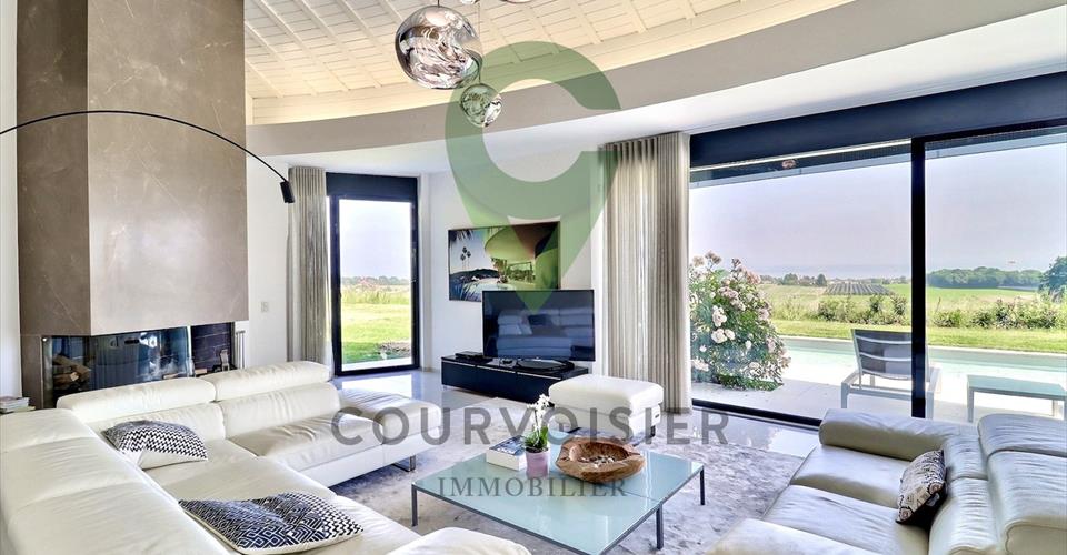 Élégance contemporaine, discrétion absolue et panorama unique sur le lac et les Alpes : cette villa rénovée incarne un art de vivre rare sur la Côte lémanique. Implantée sur un vaste terrain paysager, elle offre des prestations haut de gamme, un espace bien-être avec piscine intérieure et spa, ainsi que des extérieurs magnifiquement aménagés avec piscine et terrasses. Idéalement située à proximité de Genève, ce bien confidentiel s’adresse à une clientèle exigeante en quête d’exclusivité. (Dossier complet disponible sur demande pour acquéreurs qualifiés)