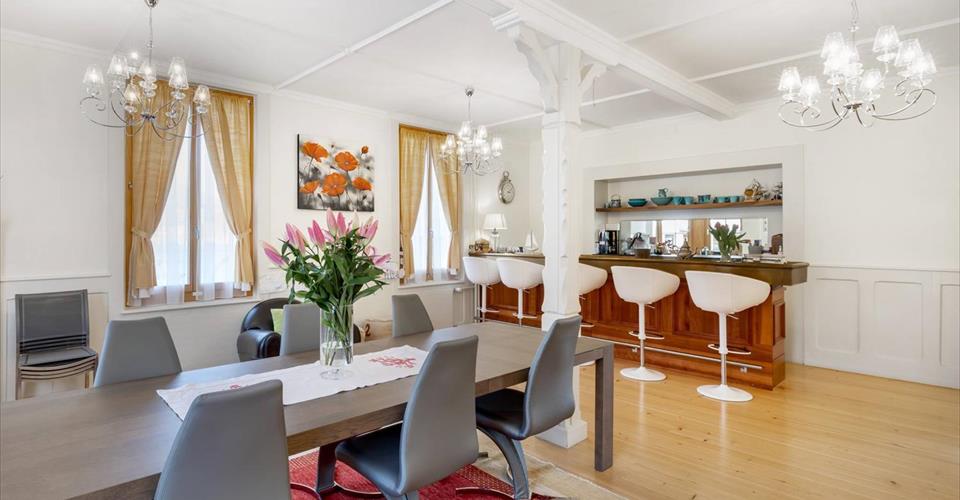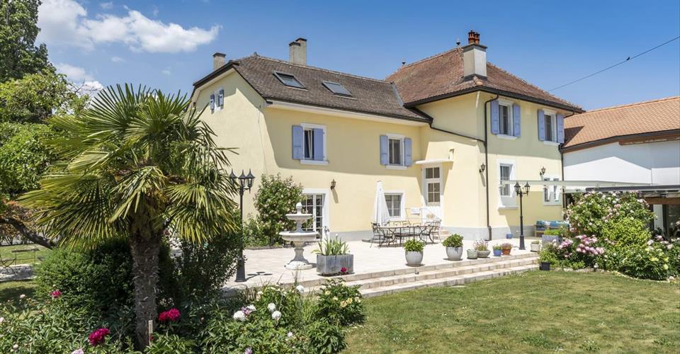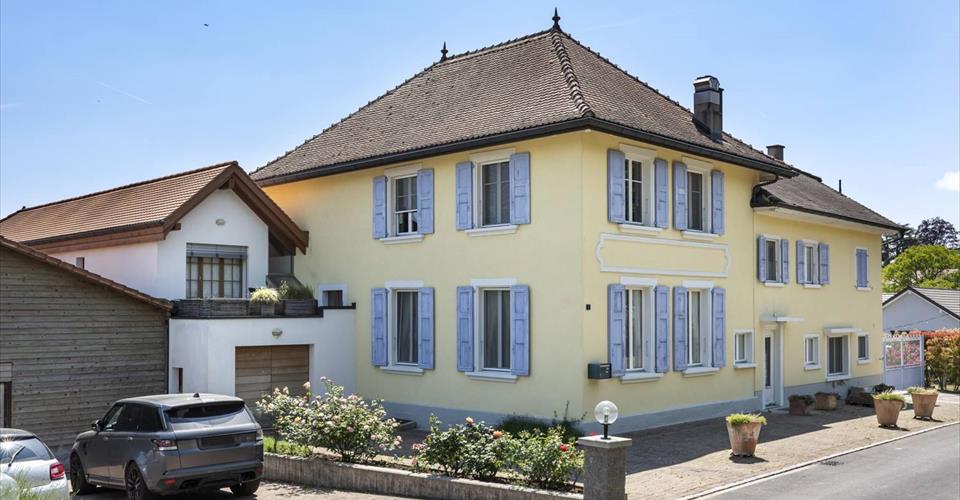 Exclusivité BARNES Yverdon ! Érigée sur une parcelle de près de 2’000 m², au calme et bien exposée, cette demeure de haut standing rénovée avec goût comblera les amoureux d’espaces généreux. La bâtisse était anciennement une auberge réputée de la région, qui a été complètement transformée en 2015 jusqu’à ce jour, avec des matériaux haut de gamme pour retrouver toute l’élégance d’autrefois et le confort actuel. La maison a toujours été entretenue avec soin et se trouve en excellent état. La propriété compte 10 pièces réparties sur trois étages + sous-sol et bénéficie d’une généreuse surface habitable de 550 m², répartie en 3 logements (studio, 3 pièces et 5,5 pièces) avec un potentiel revenu locatif intéressant. Les pièces bénéficient de beaux volumes leur conférant beaucoup de cachet qu’il s’agisse des espaces de vie, des salles de bains ou des chambres. L’aménagement intérieur a été intelligemment étudié dans le but d’offrir un maximum de luminosité en y créant une ambiance chaleureuse et une atmosphère unique et très agréable. Une grande terrasse avec terrain de pétanque ainsi que son jardin joliment arboré aux essences variées, à l’abri des regards, vous permettront de profiter d’agréables soirées d’été. Pour pouvoir profiter des extérieurs toute l’année, la propriété dispose d’un living extérieur couvert avec cuisine d’été ainsi que d’une annexe avec salle de bains (possibilité d’y créer un SPA). Un garage-double chauffé, un couvert, ainsi que plusieurs places de parc extérieures complètent l’ensemble. Ce bien de caractère vous surprendra par son authenticité et son charme indéniable.
