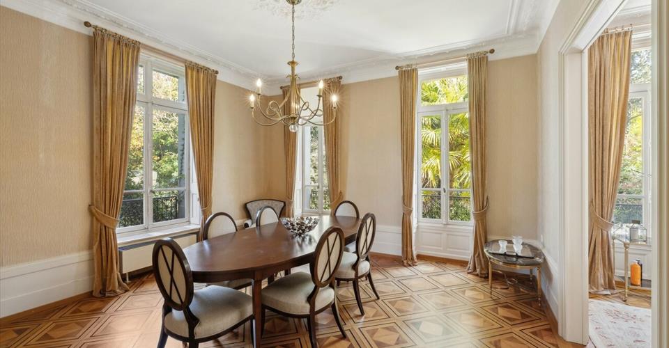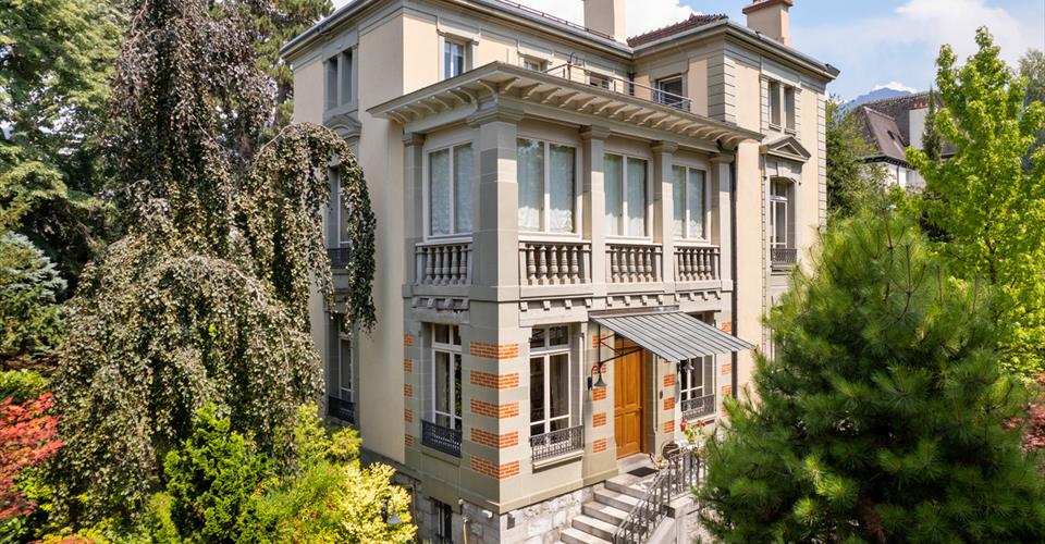 Située au sein du célèbre quartier résidentiel des villas Dubochet, cette luxueuse propriété profite d’un cadre idyllique et exclusif, à seulement quelques pas du bord du lac et à 5 minutes de Montreux. Cet emplacement de charme lui procure une proximité immédiate avec toutes les commodités, tout en bénéficiant d’une tranquillité absolue. Un arrêt de bus se trouve par ailleurs à seulement 200 mètres de cette dernière. – Elégance des lieux alliant raffinement, charme d’antan et matériaux haut de gamme – 3 niveaux + sous-sol, caractère unique, style architectural d’époque – Hauts plafonds ornés de frises, cheminées en marbre, parquets bruts – Minutieusement entretenue, en très bon état d’entretien – Magnifique parc arboré aux diverses essences