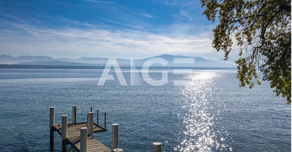 Nichée en première ligne face au lac, cette propriété unique d’env. 350 m² offre une vue panoramique imprenable. Répartie sur quatre niveaux, elle se distingue par ses finitions haut de gamme, ses volumes lumineux et sa suite parentale avec dressing sur mesure. Un espace bien-être avec spa, hammam et sauna, ainsi qu’un splendide jardin paysager avec piscine complètent le confort intérieur. À l’extérieur, ponton privé, garage à bateau et accès direct au lac créent un cadre exclusif pour les amateurs de plaisirs nautiques. Idéalement située, proche des écoles internationales et à 35 minutes de Genève, cette villa conjugue élégance, intimité et art de vivre au bord de l’eau