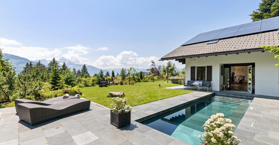 Le chalet Emily n’est pas qu’un chalet! C’est une magnifique propriété de standing dernièrement rénovée en 2018 implantée au cœur d’un grand parc privé bénéficiant d’une vue imprenable sur les Alpes. Idéalement situé à La Barboleuse sur la commune de Gryon, le centre de Villars-sur-Ollon avec ses écoles internationales n’est qu’à 10min en voiture. A proximité, le télécabine des Chaux vous emmènera directement sur le domaine skiable Villars / Gryon / Les Diablerets faisant partie du forfait saisonnier MagicPass. – Grand parc privé verdoyant avec portail – Piscine à courant chauffée / Sauna / Terrain de jeu – Spacieuses pièces ouvertes – Master suite avec deux dressings et deux salles de bains – Double garage, nombreuses places de parc – Disponible en résidence principale ou secondaire Une visite virtuelle est disponible sur demande Un chalet d’exception à visiter sans tarder!