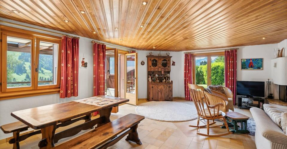 EXCLUSIVITE SWITZERLAND SOTHEBY’S INTERNATIONAL RELATY Le Cacolet est un splendide chalet construit en 1990 sur 3 niveaux totalisant plus de 300m2 utile et idéalement située entre Gryon et la Barboleuse sur la plateau de Villars/Gryon, station cosmopolite des Alpes Vaudoises. Orienté Sud, la vue sur les Alpes est spectaculaire. L’ensoleillement y est optimal. Carnotzet / Cave à vin Salle de billard boisée Belle parcelle plane engazonnée Jardin d’hiver Salon avec cheminée 5 chambres / 4 salle de bain Cuisine habitable Le chalet est disponible en résidence principale ou secondaire ainsi qu’à la vente aux étrangers. Un tour vidéo est disponible sur demande.