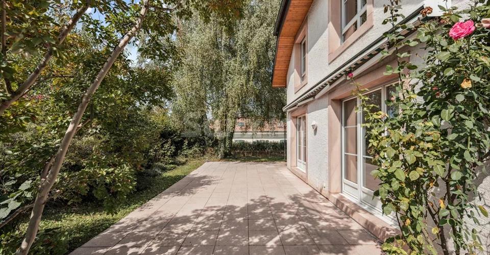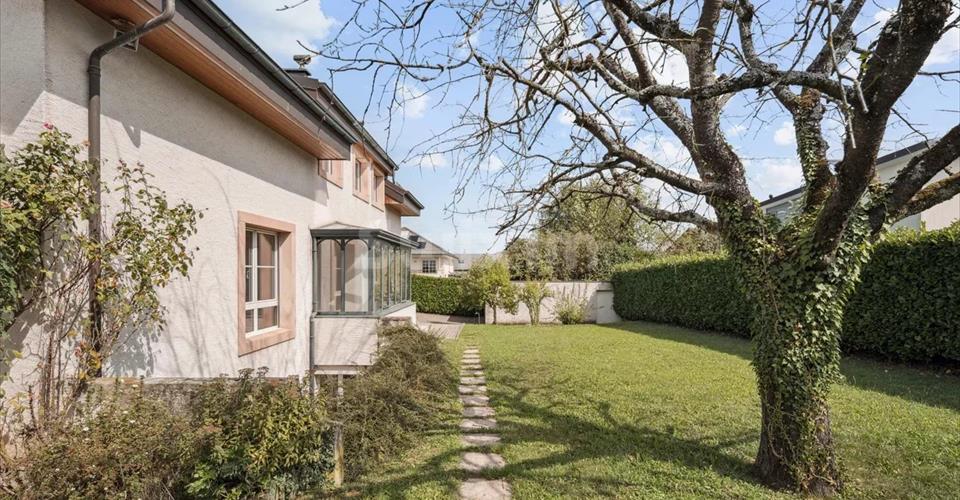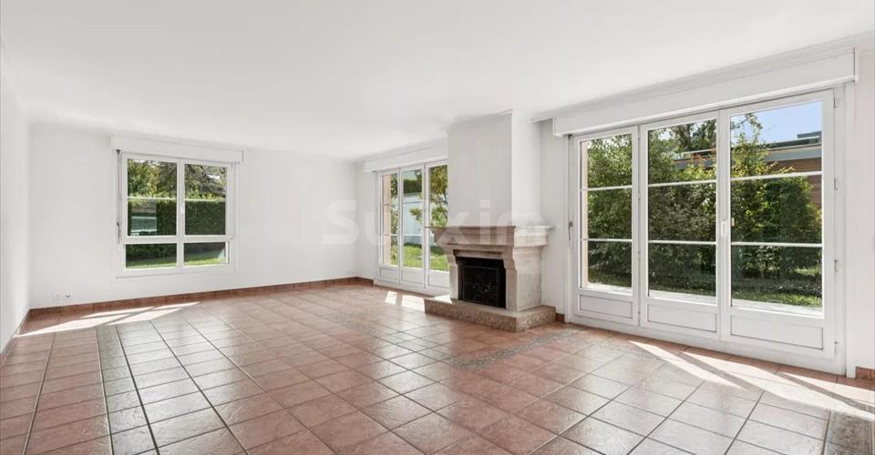 Réf. 4161LM: Plan-les-Ouates, emplacement très recherché au calme, exceptionnelle maison individuelle avec de très beaux volumes et un agréable jardin. Au rez, un hall d’entrée avec rangements, un bureau ou chambre avec toilettes accès indépendant ainsi qu’une chambre accès terrasse et sa salle de douche attenante, une spacieuse cuisine avec espace repas, une très grande salle à manger lumineuse puis un agréable séjour avec cheminée. A l’étage, une superbe suite parentale comprenant dressing, salle de bain privative et toilette séparé. Quatre chambres supplémentaires avec dressing ainsi qu’une seconde salle de bain-toilette. Sous-sol comprenant une salle de jeu ou chambre d’amis lumineuse en cour anglaise, buanderie, aménagement pour une salle de douche supplémentaire, abri ainsi qu’un espace rangement. Une cour permettant plusieurs places de parking complètent l’ensemble ainsi qu’un garage fermé. Pour amateurs de confort – grands espaces – standing