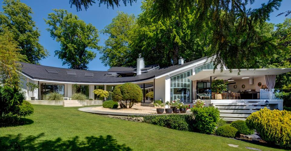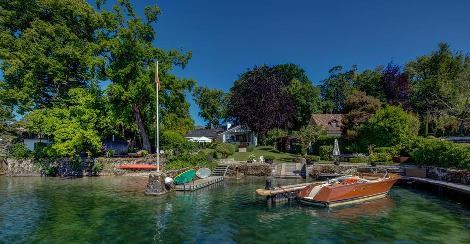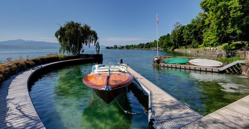 Située au bord du Lac Léman, cette propriété exclusive dispose d’un accès direct et privé au lac. Avec sa forme hémisphérique en parfaite harmonie avec le lac, elle a été conçue par le célèbre architecte suisse Tschumi au milieu des années 50 et totalement restaurée au cours d’un processus méticuleux de 3 ans avec des matériaux de haute qualité. Avec une hauteur sous plafond très appréciable, la propriété offre un généreux salon avec un mobilier sur mesure fait à partir de matériaux rares et précieux : poignées de portes et fenêtres en laiton massif avec logo de la villa, marbre, pierre italienne… La cuisine est entièrement équipée avec des appareils électroménagers Gaggenau, une robinetterie Gessi, un présentoir à vin, et bien d’autres équipements qui sauront satisfaire les plus exigeants. Pied-dans-l’eau, la villa dispose d’un accès privé au lac avec un port privé pour 6 bateaux. L’espace extérieur offre une zone de barbecue au bord du lac, un salon suspendu à la ligne de flottaison, une petite plage de gravier et une piscine couverte en mosaïque conçue par un architecte parisien, avec sauna vapeur, musique sous-marine, jets de nage et jardin méditatif japonais. Une salle de cinéma en plein air, un sauna extérieur avec vue sur le lac, des plantes et arbres rares et des sculptures d’artistes de renom sont autant de privilèges qui font de cette propriété un endroit idyllique.