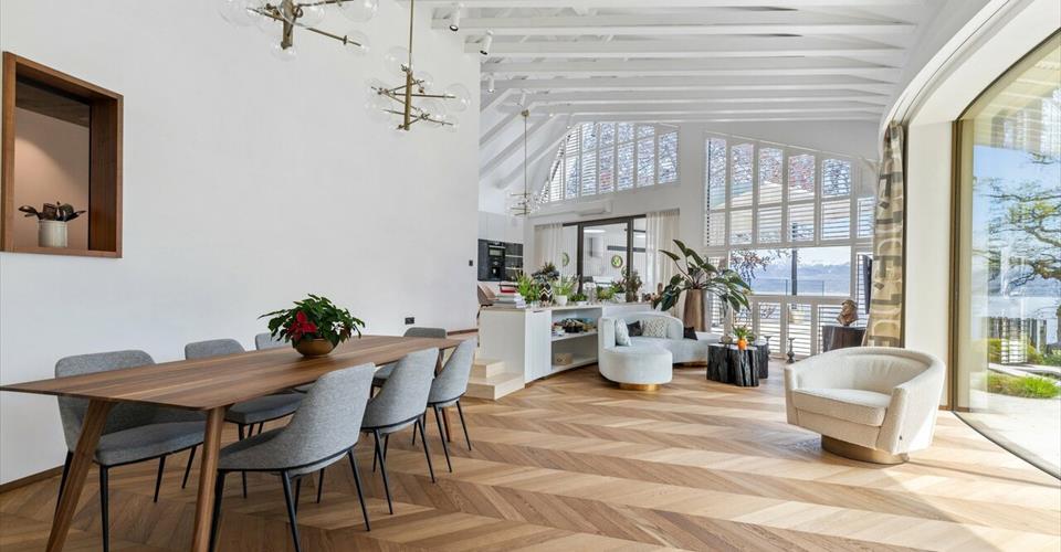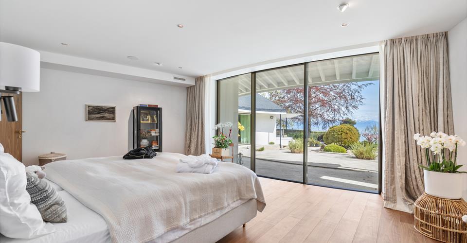 Une demeure unique en son genre ! Idéalement située dans un cadre rare et idyllique, proche de toutes les commodités, cette propriété unique dispose d’un accès privatif et direct au lac. Construite sur 3 niveaux, elle bénéficie d’une luminosité optimale tout au long de la journée grâce à ses baies vitrées. Les couleurs naturelles et les matériaux haut de gamme accentuent la transparence et la modernité. Le garage accessible par une rampe peut accueillir 5 voitures ainsi que des espaces de rangements. Une guest-house soigneusement aménagée et totalement indépendante se compose d’une cuisine, d’un salon, d’une chambre à coucher ainsi que d’une salle de bains. Enfin, un port privé pour 6 bateaux et un accès privé au lac complètent ce bien d’exception.