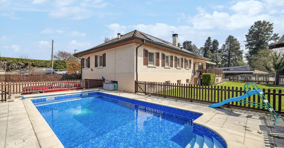 INFORMATIONS PRINCIPALES Type de bien: Villa individuelle Surface habitable: 240 m² Chambres: 8 Salles d’eau: 3 Terrain: Jardin paysager avec piscine et étang Parking: Double garage + 2 places extérieures État: Excellent OPPORTUNITÉ D’INVESTISSEMENT EN VIAGER Prix d’achat (bouquet unique): CHF 1’360’000.- Valeur vénale: CHF 2’750’000.- Économie réalisée: CHF 1’390’000.- (plus de 50%) Rente mensuelle: Aucune Occupation: Viager occupé (homme de 69 ans) DESCRIPTION Située dans un quartier résidentiel prisé de Vernier, cette magnifique villa de 240 m² offre des prestations haut de gamme et une distribution idéale pour une famille nombreuse ou des amateurs d’espace. Aménagement intérieur Rez-de-chaussée: Cuisine fermée avec équipements de qualité Salon spacieux avec cheminée et accès direct au balcon Salle à manger lumineuse avec accès direct à l’extérieur Salle de bain et WC visiteurs séparé 5 chambres à coucher – dont une suite parentale avec salle d’eau privative Sous-sol aménagé: 2 Chambres Salle de bain Cave et buanderie entièrement équipée Carnotzet traditionnel pour les moments de convivialité 2 espaces rangements (sous terrasse et attenant à la buanderie) avec accès par extérieur ou intérieur Espace extérieur Piscine sécurisée de 4,25 × 8,50 m Terrasse couverte de 28 m² Jardin paysager entièrement clôturé Étang décoratif Double garage et 2 places de stationnement extérieures LE VIAGER LIBRE SANS RENTE – UN INVESTISSEMENT INTELLIGENT Cette formule de viager sans rente vous permet d’acquérir ce bien d’exception à un prix très avantageux. Vous réalisez un investissement patrimonial sécurisé dans un marché immobilier stable, sans gestion locative ni versement de rente mensuelle. Idéal pour les investisseurs avisés souhaitant diversifier leur portefeuille ou constituer un patrimoine immobilier de qualité.