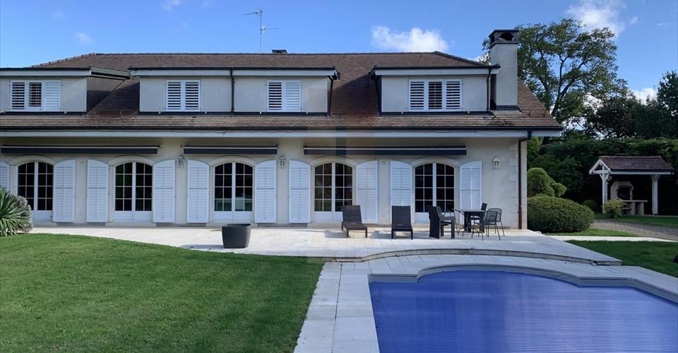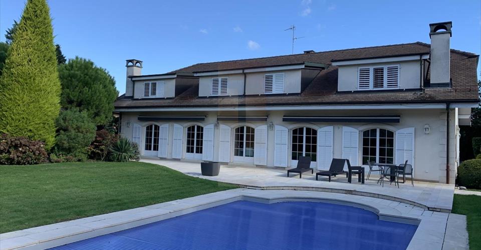 Cette belle maison de style classique, implantée sur une parcelle totalisant 2524m2, se trouve dans le quartier du Plateau de Pinchat, au sein de la commune de Vessy. Construite en 1991, elle se composait à l’origine de 2 maisons mitoyennes qui ont été fusionnées en une seule maison. Rénovée intégralement en 2007 avec des matériaux de qualité, elle propose une surface habitable d’approximativement 460m2, ainsi qu’un sous-sol entièrement excavé de près de 200m2. La propriété comprend également une dépendance chauffée d’environ 42m2 qui a été convertie en pool house, ainsi qu’un petite annexe servant de cabane pour l’outillage de jardin. La maison principale se compose comme suit: RDC : L’entrée donne sur un vestiaire, un salon / salle à manger, une cuisine entièrement équipée, un espace bureau et un WC visiteur. Un couloir mène de la salle à manger directement à un 2ème salon avec cheminée, ainsi qu’à une 2ème entrée avec vestiaire, accédant à une chambre à coucher avec une salle de douche attenante. Etage : Le 1er étage comprend 4 chambres à coucher, 3 salles de bain, 2 paliers d’étage, ainsi qu’un WC visiteur. Sous-sol : Nous trouvons une salle polyvalente avec un jacuzzi, une buanderie séparée, un bain vapeur (hammam), une salle de cinéma, ainsi qu’un local séparé avec un grand réfrigérateur, une petite chambre avec salle de douche attenante, une chaufferie. L’extérieur se compose d’un agréable jardin orienté sud-ouest, une terrasse donnant accès à une piscine de 55m2, d’un chemin d’accès pour voiture bordé de jolies essences, une cour intérieure avec petite fontaine centrale, permettant aisément l’arrivée et le départ des voitures, ainsi qu’un couvert pouvant abriter 4-5 voitures. Cette propriété offre un cadre de vie très agréable notamment à une famille souhaitant bénéficier de la proximité de la ville (Carouge & le centre-ville de Genève sont accessibles en quelques minutes seulement), au sein d’un quartier résidentiel de qualité. N’hésitez pas à nous contacter pour plus d’informations ou pour organiser une visite.