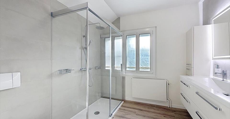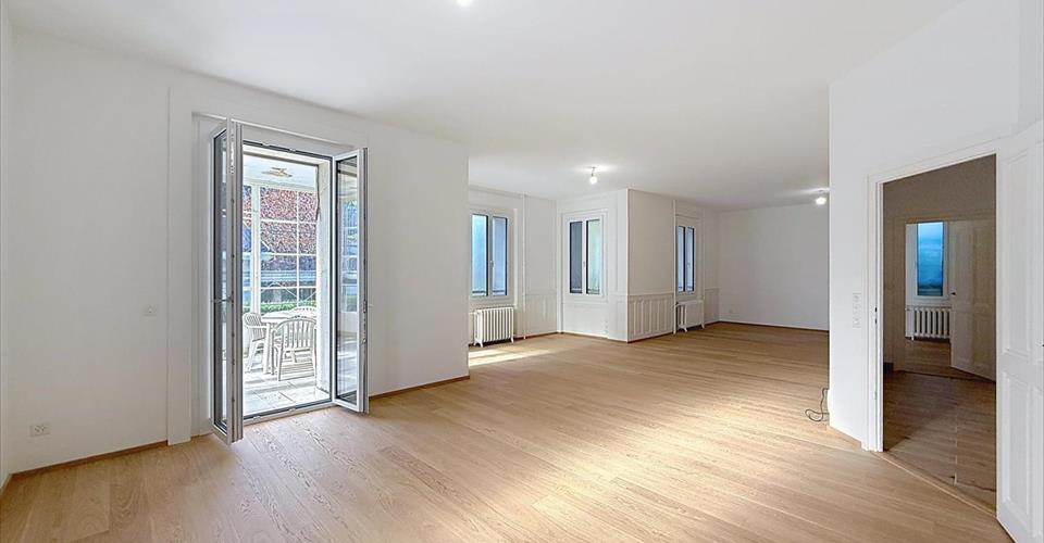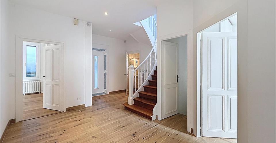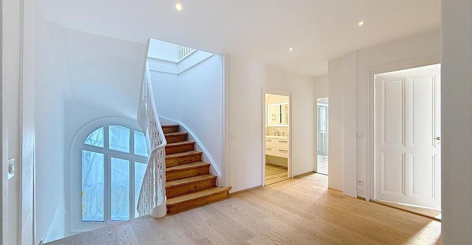 Très belle maison individuelle située à Chêne-Bougeries, entièrement rénovée avec goût et élégance. Située dans un quartier résidentiel prisé de Chêne-Bougeries, cette magnifique villa individuelle bénéficie d’un environnement calme tout en étant proche des transports publics et à seulement 5 minutes à pied de l’École Internationale. Récemment rénovée avec des matériaux de qualité, la maison allie confort, élégance et performance énergétique (label THPE). Elle se distribue comme suit: Rez-de-chaussée : – Spacieux hall d’entrée – WC visiteurs avec lavabo – Cuisine fermée, entièrement équipée et agencée, avec espace repas – Vaste séjour lumineux avec accès à la véranda – Grande salle à manger avec nombreux rangements – Belle véranda donnant sur le jardin/terrasse 1er étage : – Hall de distribution – Suite parentale avec terrasse privative et armoires encastrées – Trois chambres à coucher, dont deux d’environ 20 m², avec armoires encastrées – Une salle de bains avec WC – Une salle de douche avec WC Combles : – Grande pièce polyvalente idéale comme salle de jeux ou home cinéma – Deux chambres supplémentaires, dont une avec salle de bains/WC attenante Sous-sol : – Hall avec nombreux rangements – Grande pièce polyvalente avec accès direct à l’extérieur – Pièce de rangement – Cave – Local technique équipé d’une pompe à chaleur récemment installée – Buanderie avec machine à laver et sèche-linge – Salle de douche avec WC À l’extérieur, un charmant petit jardin avec terrasse, à l’abri des regards, permet de profiter pleinement des beaux jours. Plusieurs places de stationnement devant l’entrée complètent ce bien d’exception. CONDITIONS LOCATIVES: Loyer: CHF 15’000.–/mois Charges individuelles (pompe à chaleur, panneaux solaires) Entretien jardin/terrasse: en sus Contrat d’entretien: en sus Disponibilité: à convenir